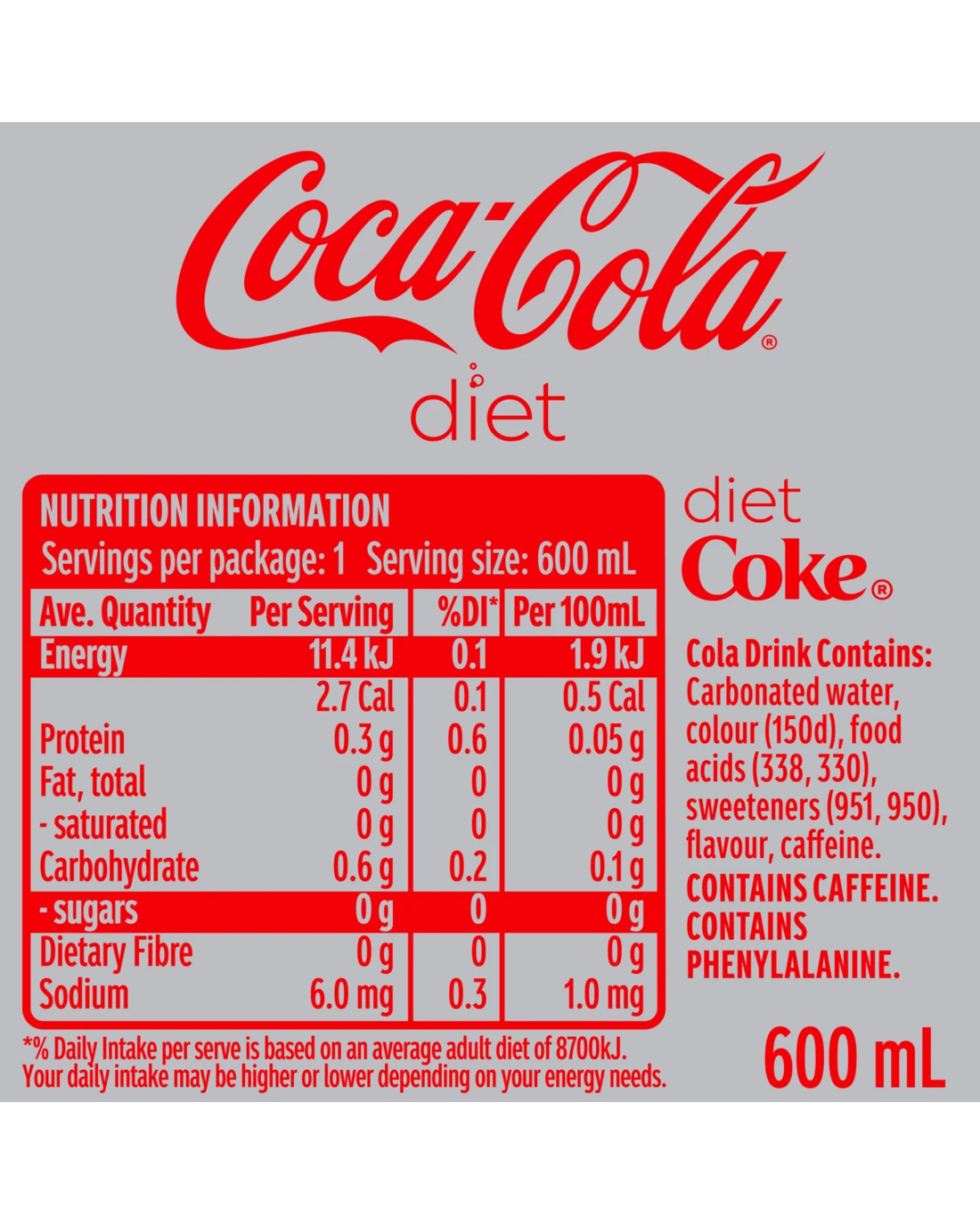 Sold by KmartDiet Coca-Cola Soft Drink Bottle 600ml