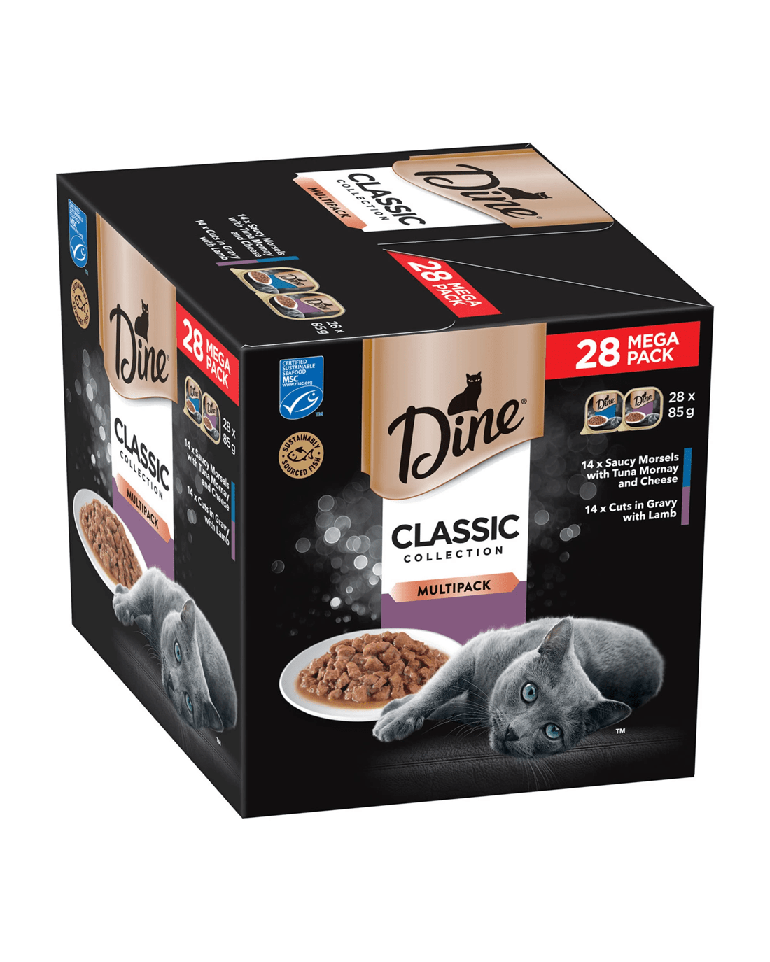 Sold by Andala PetsDine Classic Collection Multipack Saucy Morsels Tuna Mornay Cheese And Lamb Wet Cat Food 28 Pack