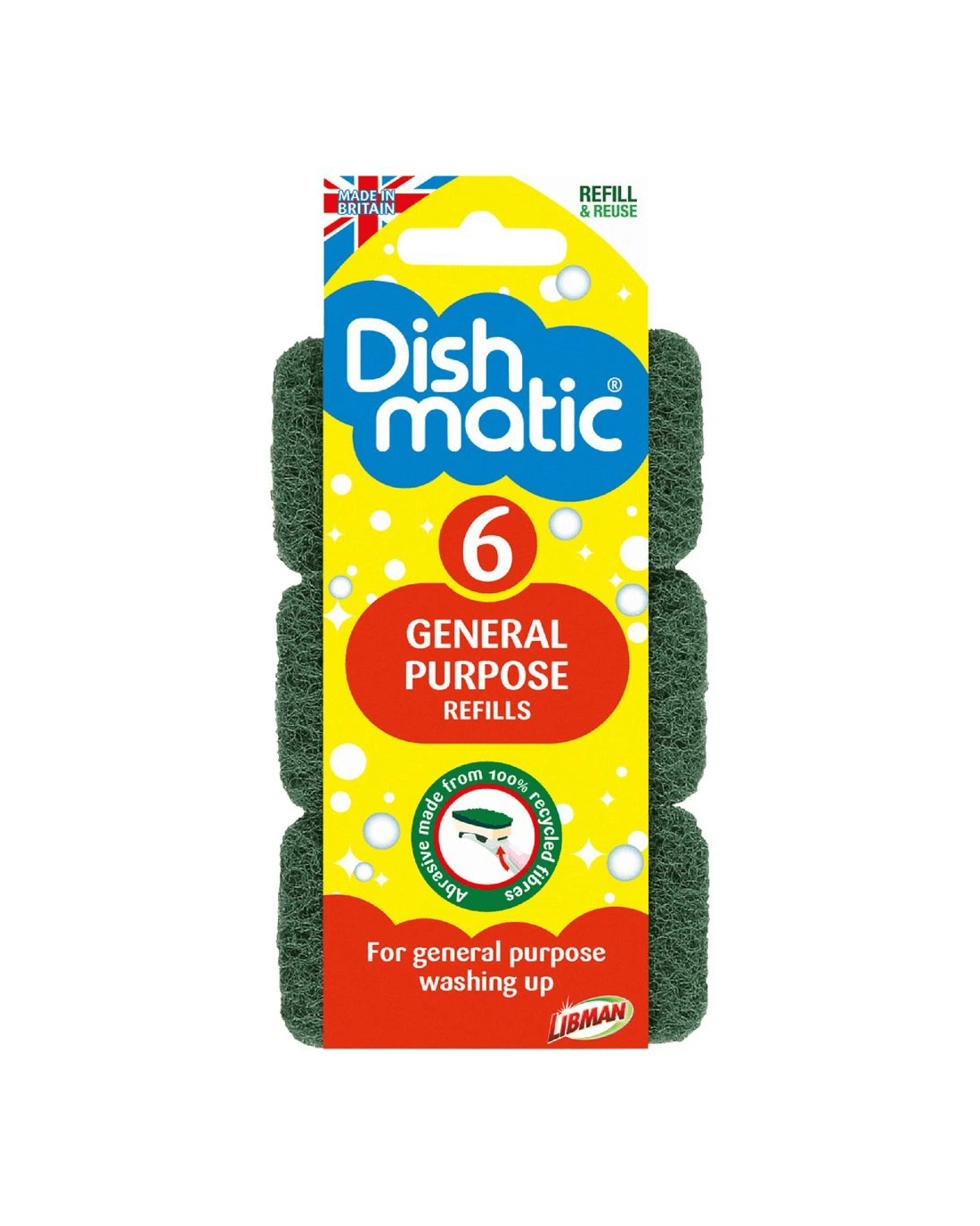 The Dishmatic General Purpose Refill Pack contains 6 heavy duty sponge heads to ensure your Dishmatic Handle lasts longer. They're perfect for general purpose cleaning and also for removing tough grease and grime.
