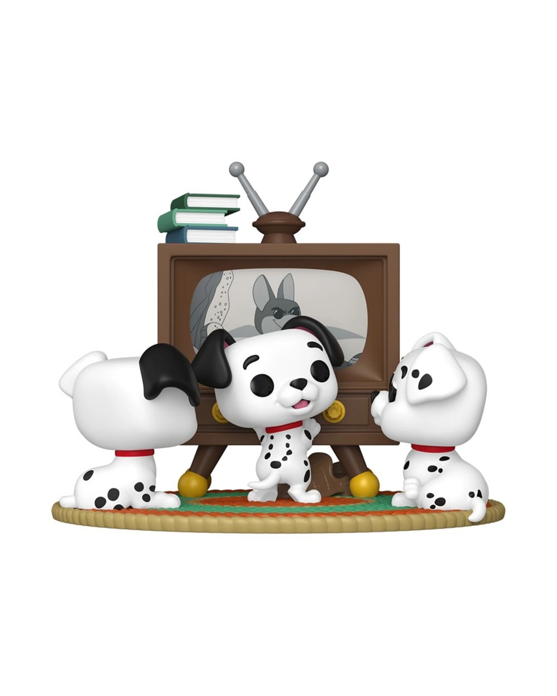 Now this memorable moment is recreated for collectors in a stylised vinyl display piece: the three pups perched at a classic television set, each one sculpted with personality and charm, nestled on a single base that highlights their bond. With vibrant colours, expressive features and displayready packaging, it's a standout capture of a fanfavourite scene from the Disney classic.
