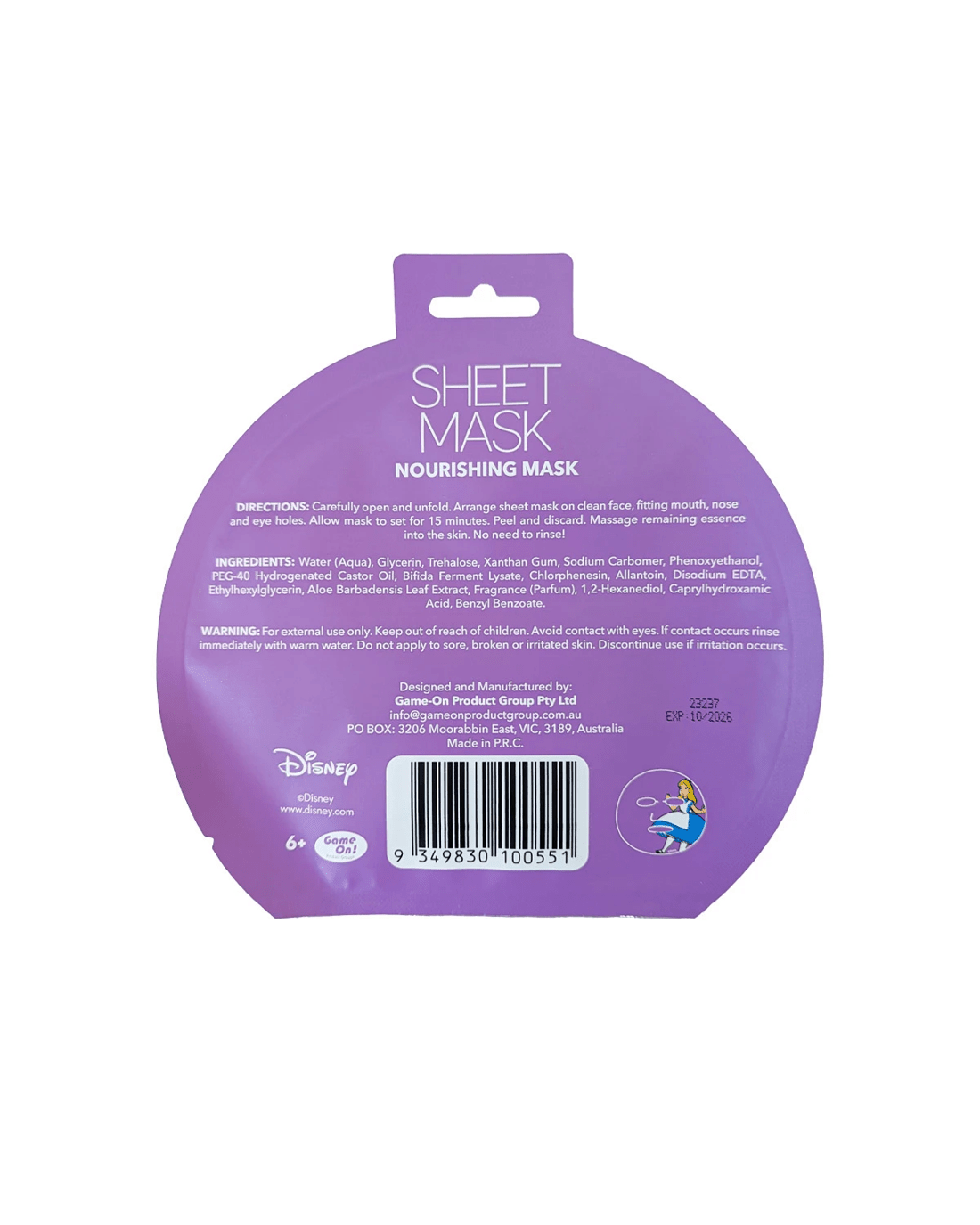 Disney Alice in Wonderland Nourishing Sheet Mask 20ml - Sweet Peach Scented