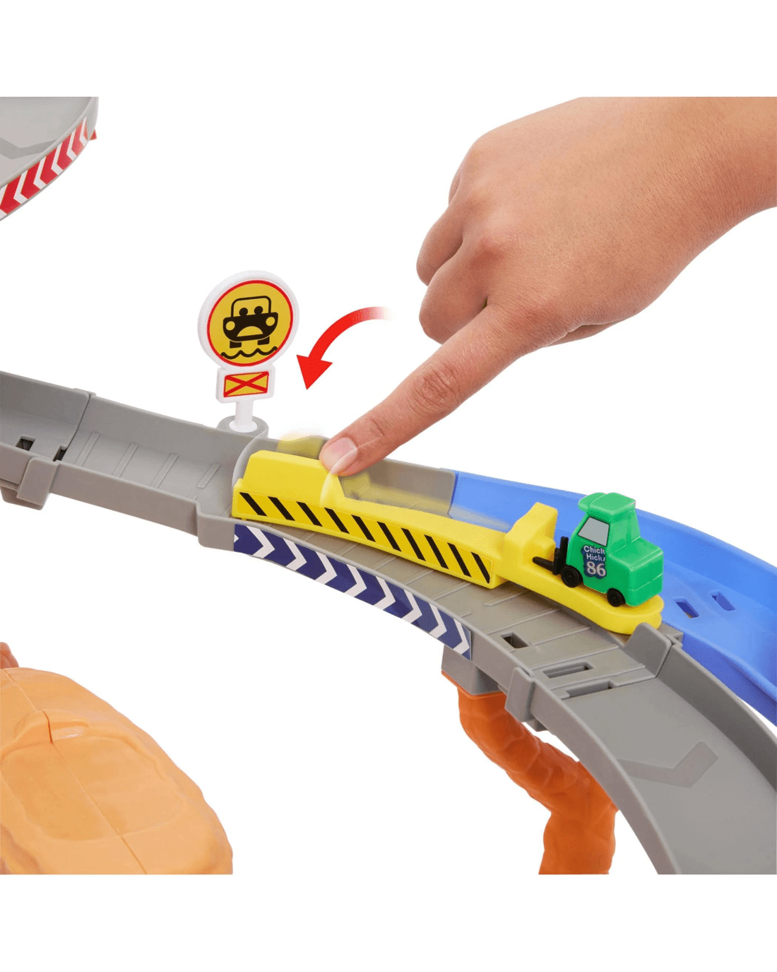 - To race, place Lightning McQueen and Chick Hicks in the starting position, press the fair start mechanism and send them racing to the fire house.