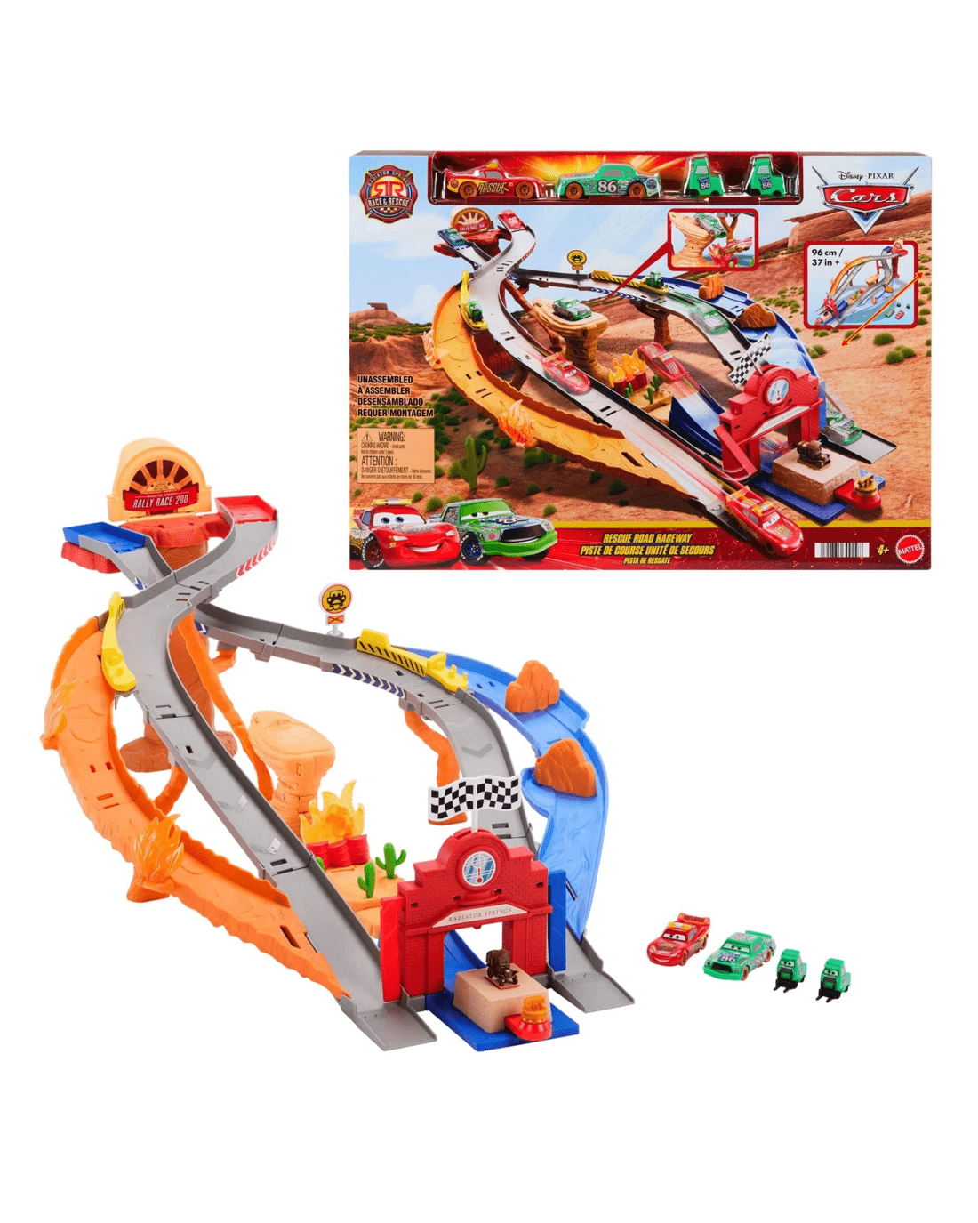 Bring the magic of Radiator Springs right into your home with the Disney and Pixar Cars Rescue Road Raceway playset. Imagine the excitement as your child lines up Lightning McQueen and Chick Hicks to race through thrilling obstacles and daring challenges. With two ways to play, children can send Lightning McQueen speeding to victory or switch to rescue mode, saving the day and sparking their imagination. The set comes with two Pitty crew figures, adding even more opportunities for pretend play and storytelling. Colourful details and engaging features keep kids entertained as they create their own Cars adventures, whether racing for the finish line or swooping in to the rescue. Perfect for young fans and families eager to experience all the twists and turns of the Cars universe. Race to grab yours and let your child become the hero of their very own Radiator Springs adventure.Features