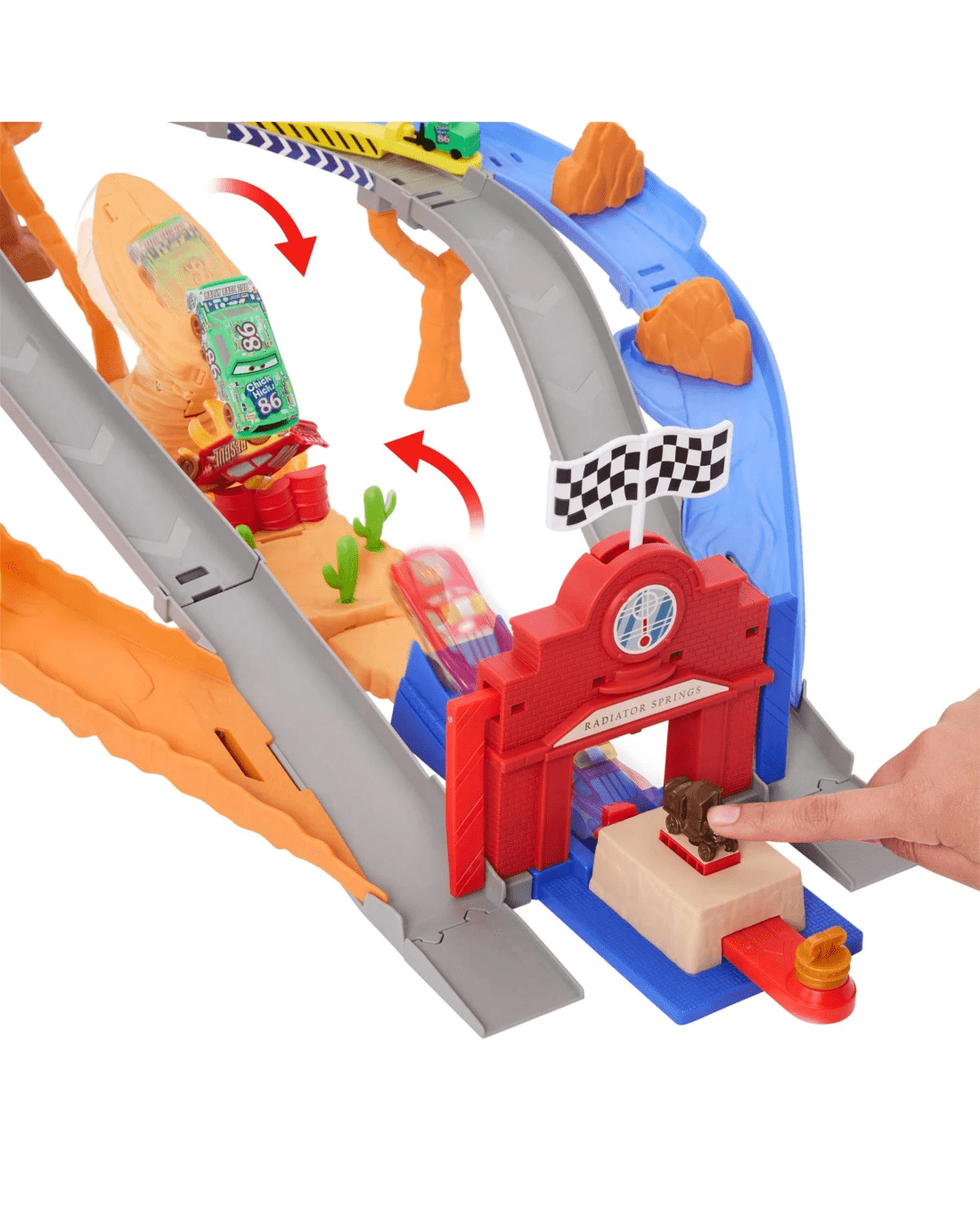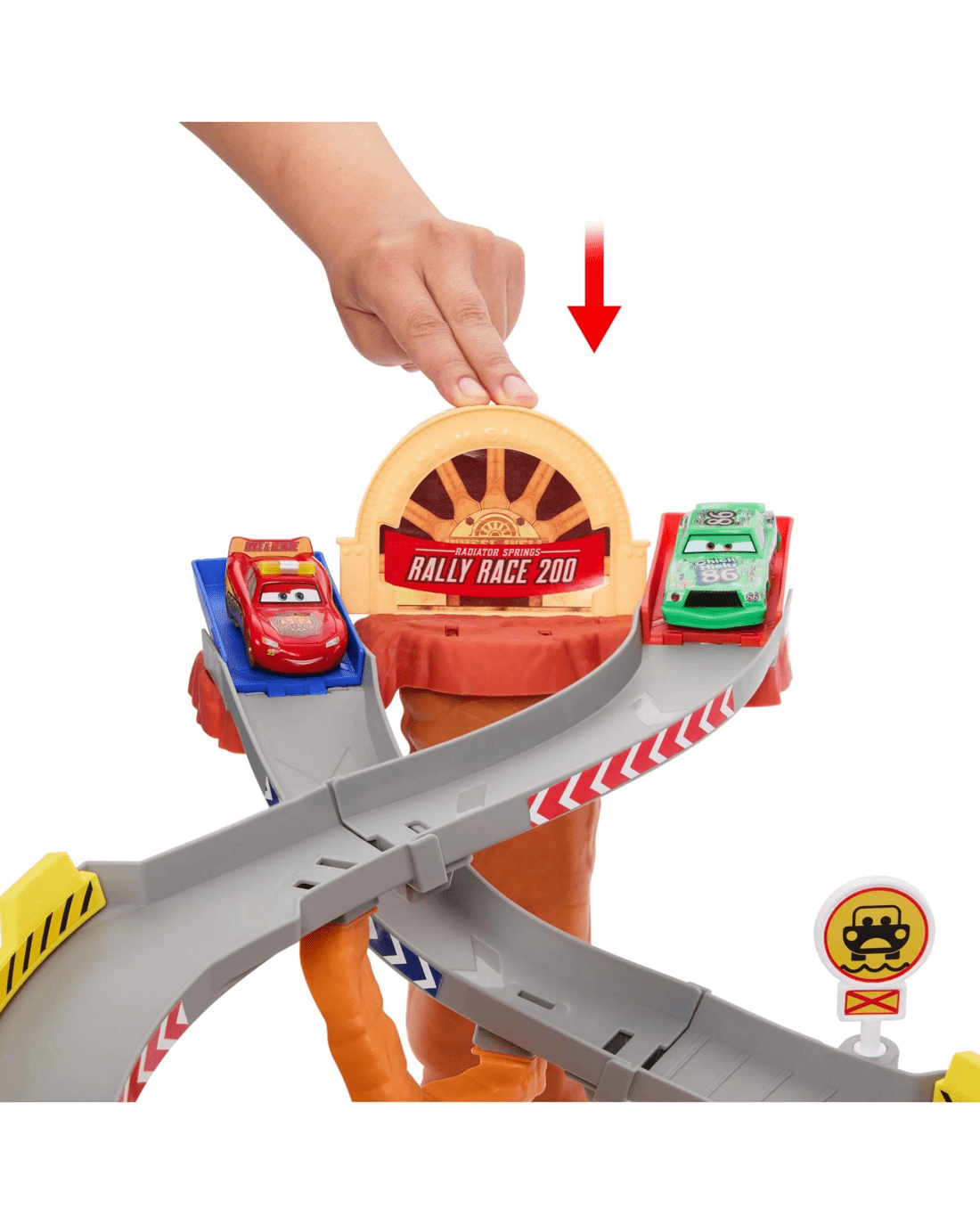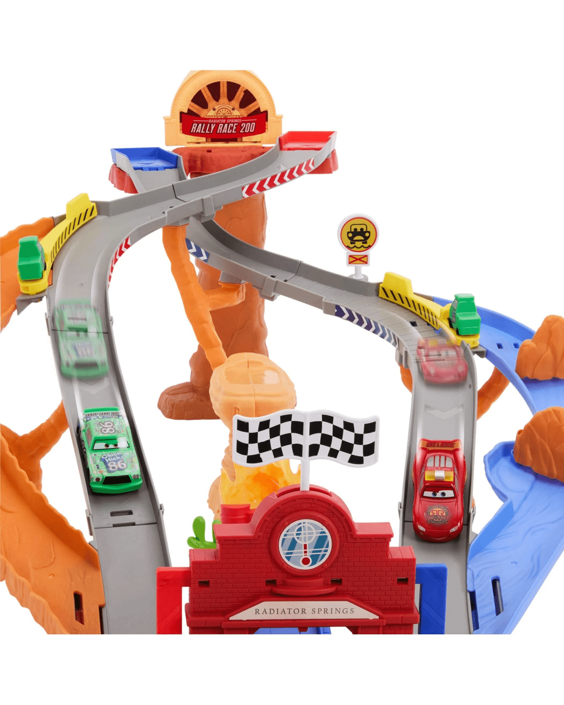 - Lightning McQueen faces off against Chick Hicks and his Pitties in the Disney and Pixar Cars Radiator Springs Race & Rescue Rescue Road Raceway playset.