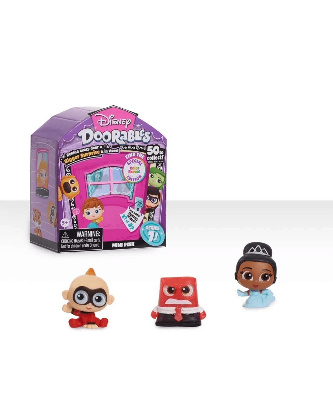 - With Disney Doorables Mini Peek Series 7 collectible figurines, unbox a surprise with glittering eyes