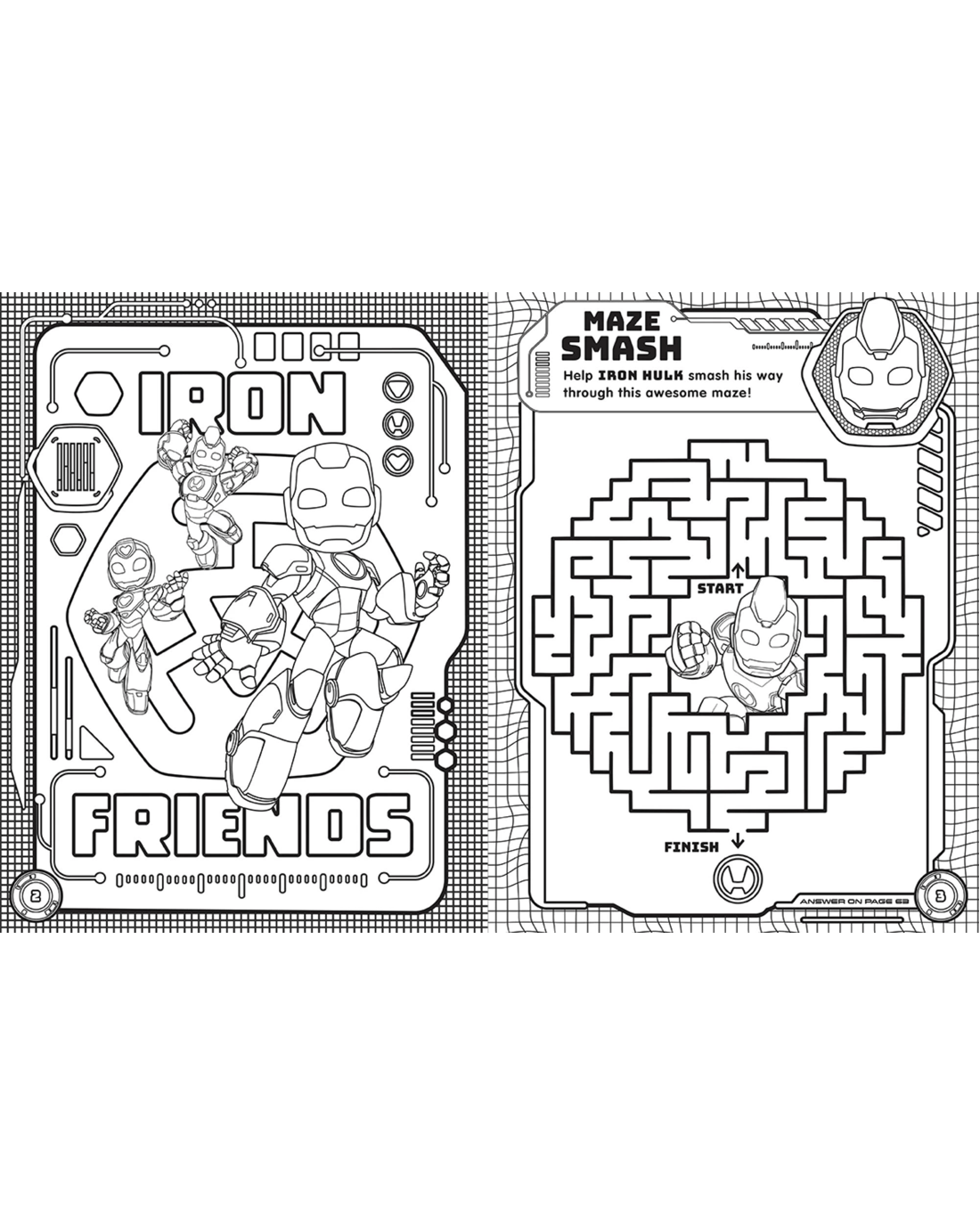 The Iron Friends are here to help you have fun! Junior Super Heroes will enjoy the challenge of completing a Mega 64 pages of colouring and activities. Each page features the incredible heroes from Iron Man and his Awesome Friends, including Iron Man, Iron Hulk, Ironheart, Captain America, Iron Spider, Black Panther and Gamma. Little heroes can test themselves on mazes, puzzles, counting, simple word searches and tracing activities that are made just for fans of the show.