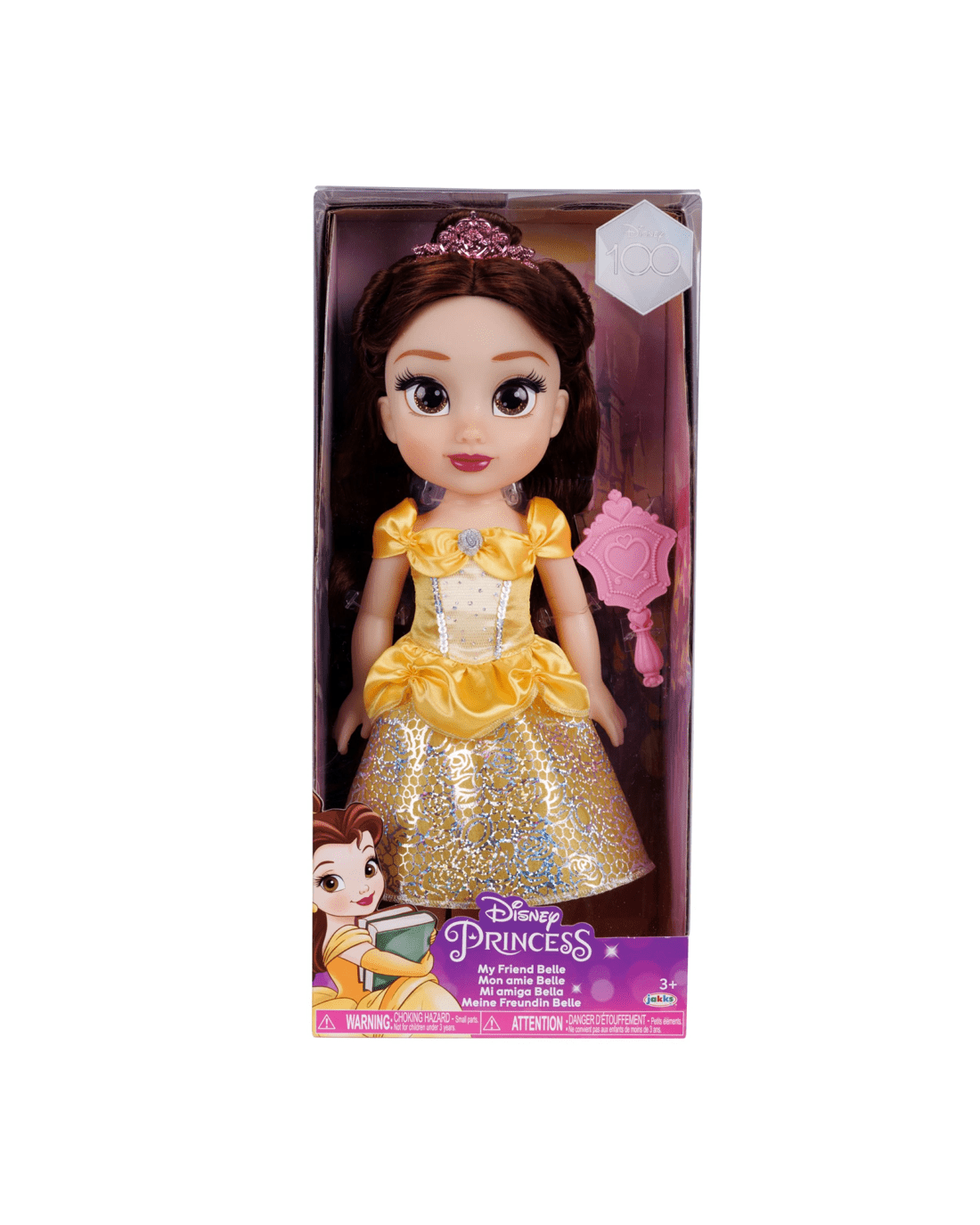 Bring the magic of Disney home with the Large Princess Core Doll featuring Belle. Perfect for imaginative play, this delightful doll stands tall and inspires endless fairy tale adventures. With five points of articulation, it's easy for children to pose Belle as they recreate their favourite movie scenes or invent new stories. The set includes a beautiful removable outfit, shoes, a dazzling tiara, and a brush to style Belle's lovely hair. Designed with little princesses in mind, this enchanting doll is sure to become a cherished companion. Make playtime magical and invite Belle into your world today.Features