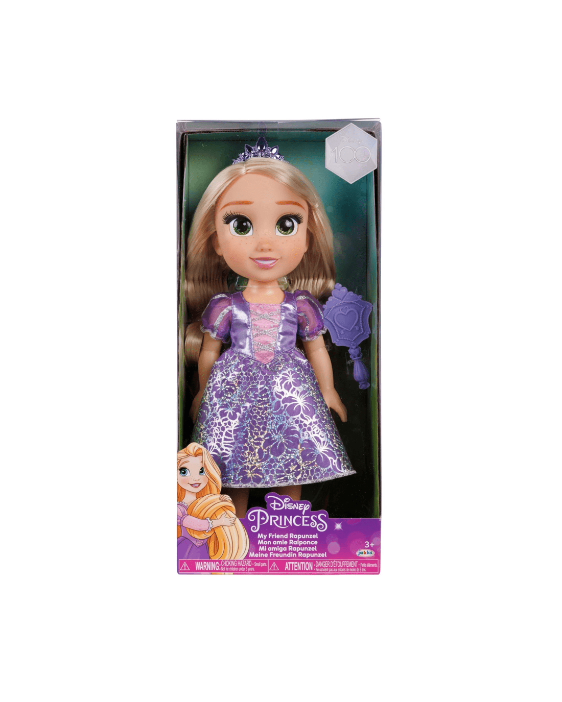 Step into a world of fairy-tale excitement with the Disney Large Princess Core Doll featuring Rapunzel. Let your child's imagination soar as they style Rapunzel's signature brushable hair and dress her in her removable outfit, shoes, and tiara. Thanks to five points of articulation, children can create dynamic poses and act out their favourite scenes with ease. This wonderful doll comes complete with all the essentials for story-filled playtime, including a doll brush and sparkling tiara. Perfect for ages three and up, Rapunzel is ready to inspire hours of creative fun. Make playtime shine brighter with this enchanting doll.Features