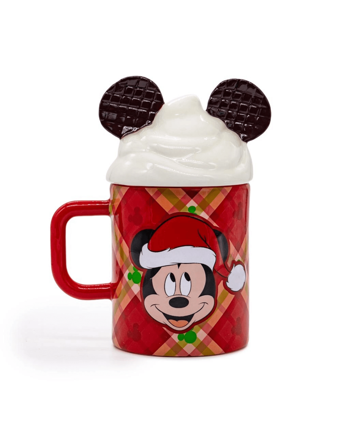 Celebrate the most wonderful time of the year with a festive twist on a Disney classic. This adorable Mickey Mouse mug features Mickey wearing a Santa hat, surrounded by a red plaid Christmas pattern thats perfect for the season. Whether you're enjoying hot cocoa by the fireplace or gifting a little Disney magic, this holiday-themed mug brings warmth to every moment.