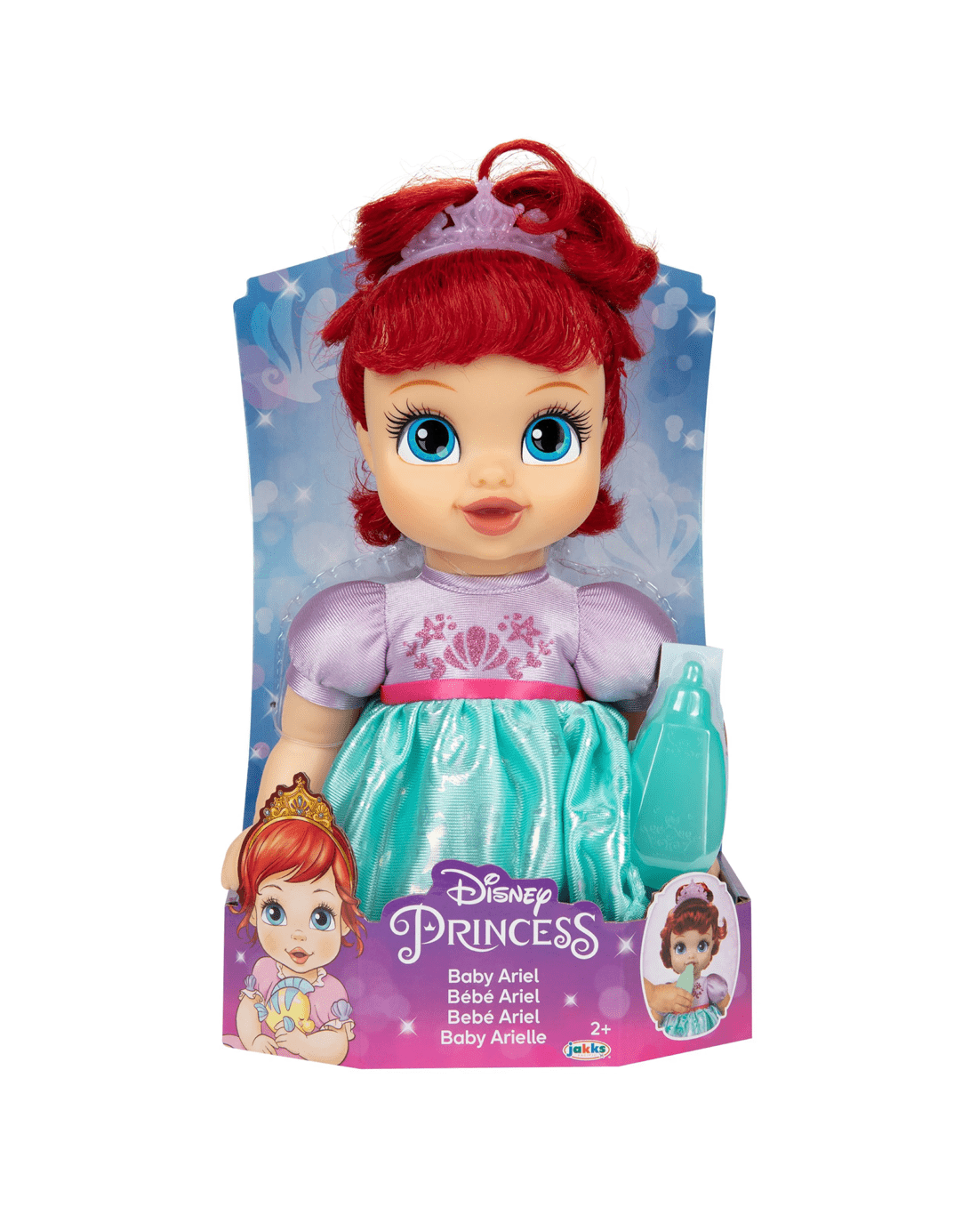 Spark a world of imagination with the Disney Princess Baby Doll featuring Ariel. Your child will be delighted by her shimmering story-inspired outfit with cheerful foil prints of Flounder, shells and other undersea treasures. Baby Ariel's wonderfully cuddly soft body makes her perfect for hugs and snuggling during quiet moments or play. Little hands will love helping Ariel hold her bottle and pacifier, adding a sweet nurturing touch to every adventure. Complete with a glimmering tiara, this doll is ready to join in any magical story your little one dreams up. Gift memorable moments of creativity and caring with Baby Ariel, and make playtime truly enchanting. Start the adventure today!Features