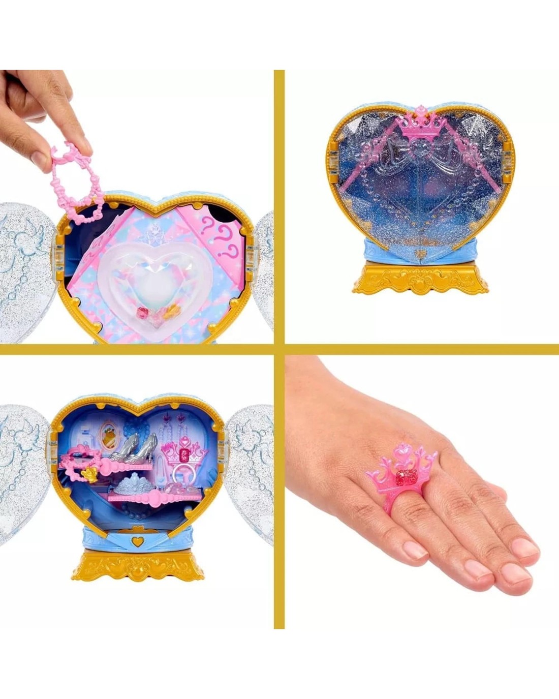 - Attach the heart to the package base to create a fun gem box with shelves for storing all your accessories. Then style Cinderella doll for adventure!