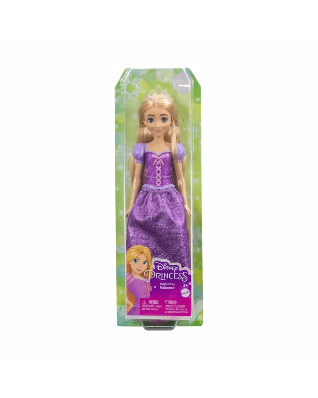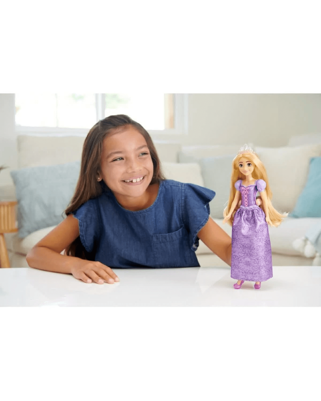 Meet this Rapunzel doll, inspired by the vibrant and creative princess from Disney's Tangled! This posable fashion doll is shown in a sparkling outfit and accessories that include shoes and a tiara. In her signature look from the movie, this Rapunzel doll is ready for any adventure!