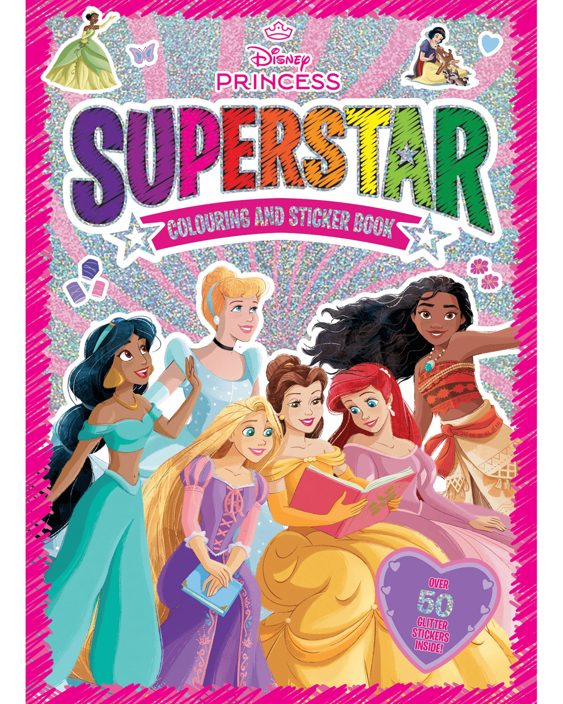 Let your inner royal shine through as you bring a touch of glittery magic to this Disney Princess Superstar Colouring And Sticker Book. Swim in shimmering waters with Ariel, dance alongside Rapunzel and light up the ballroom with Cinderella - every moment will be full of colour and sparkle. Then use your holographic stickers to add some shine everywhere you go! This 48-page colouring book also comes with over 50 sparkly holographic stickers!