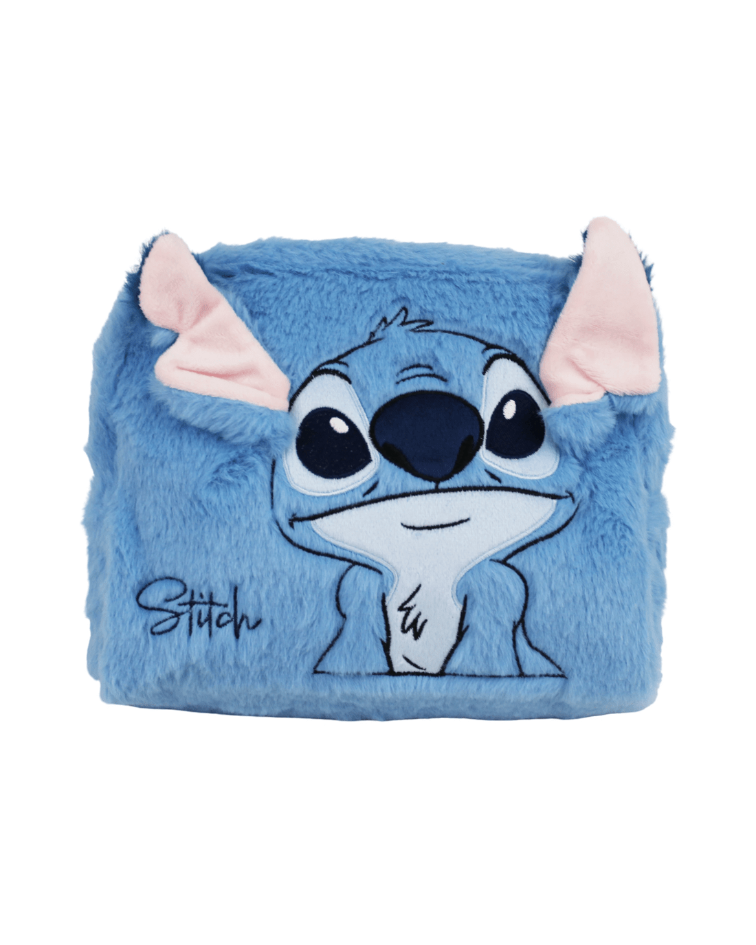 This fluffy Stitch cosmetic bag is soft, compact and perfect for carrying everyday essentials. The plush texture makes it extra fun to use while the simple zip opening gives easy access to makeup, hair accessories or small personal items. It fits easily into backpacks and handbags for travel or daily organisation.