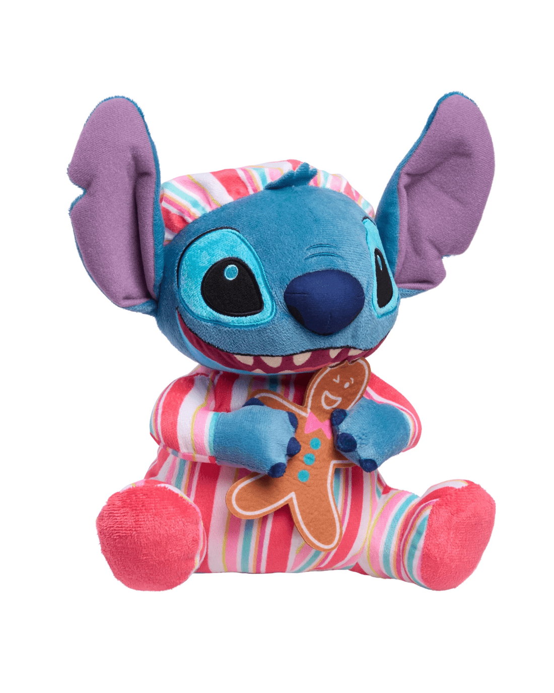 - Cosy holiday nights: Each 10-inch Disney Stitch holiday plushie wears a comfy pair of striped pajamas, complete with an adorable nightcap with pom-pom