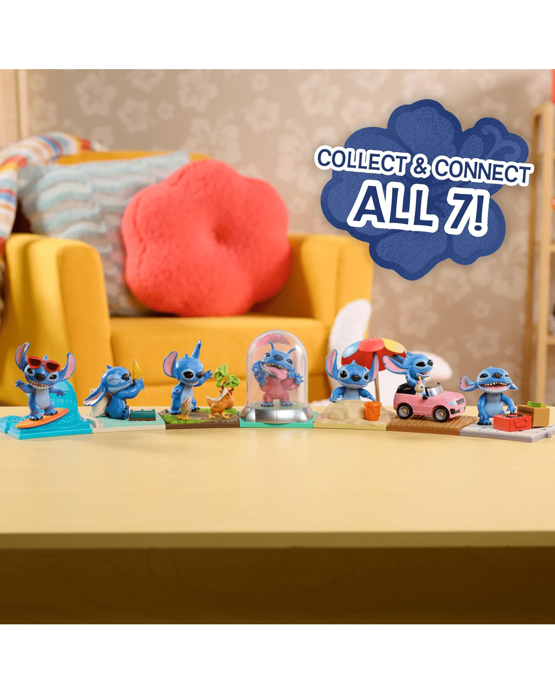 • Collect and Connect: Each 3-inch Disney Stitch figure comes with props and a base designed to connect to other figures in this series. Find and connect them all to assemble an exciting display!