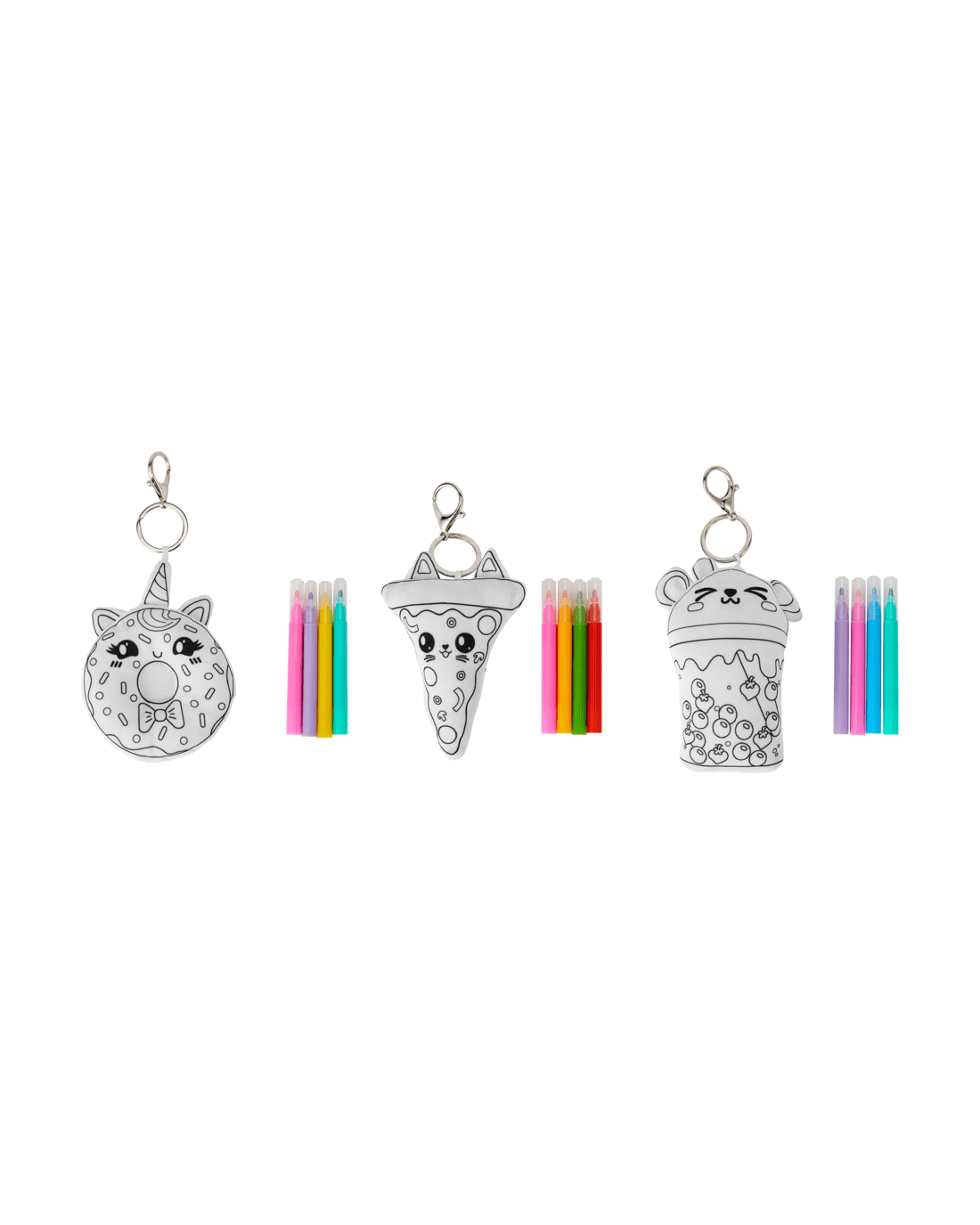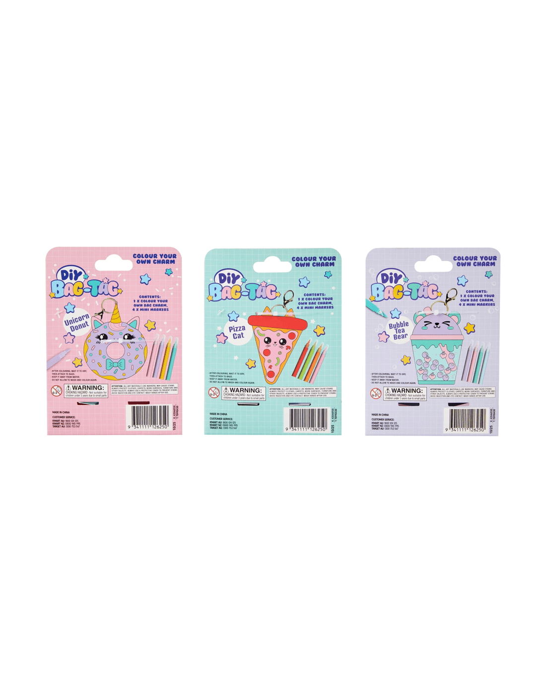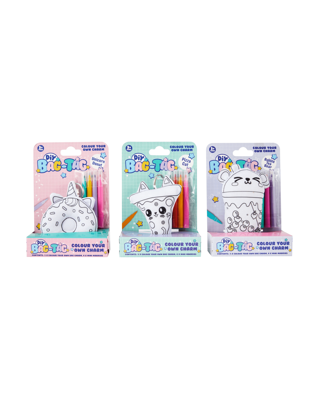 - Includes 1 x colour your own bag charm and 4 x mini markers
