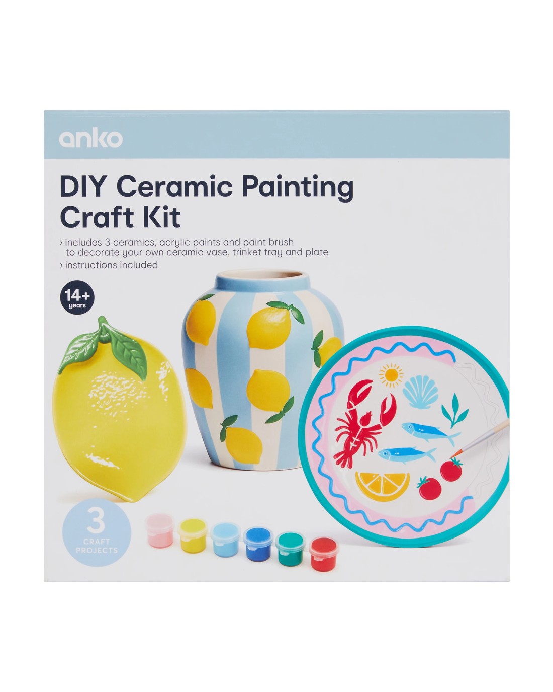 • Includes 3 ceramics, acrylic paints and paint brush to decorate your own ceramic vase, trinket tray and plate