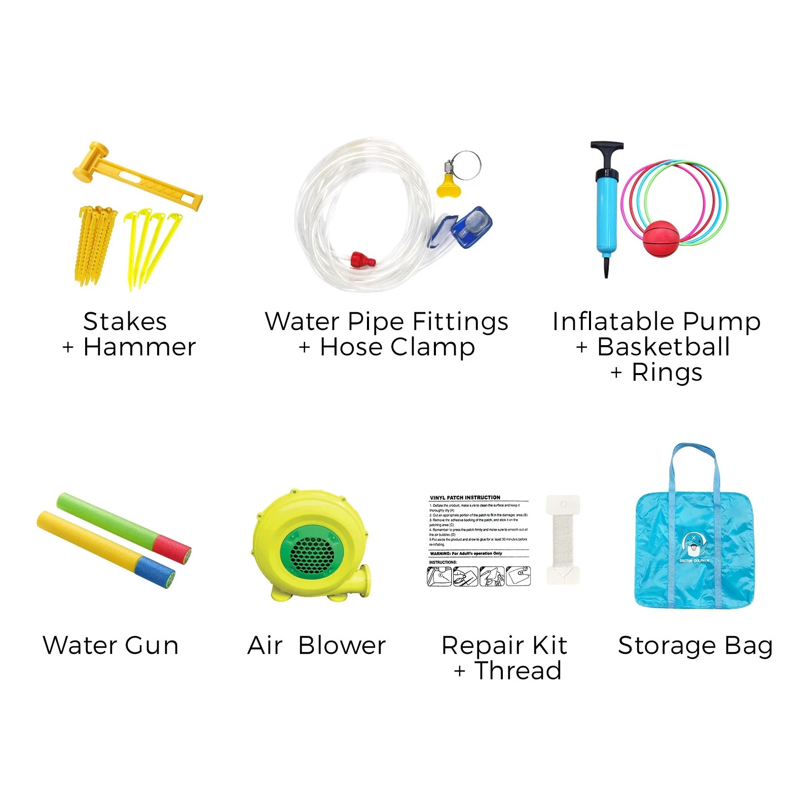 Doctor Dolphin 10-in-1 Inflatable Water Park Jumping Castle Dual Slides Blower - Multi