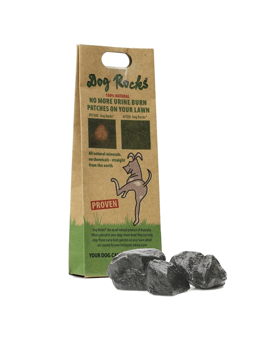 Keep your garden in pristine condition with Dog Rocks Lawn-Saving Rocks, the eco-friendly solution to prevent urine burn spots on your lawn. Extracted from select Australian mines, these unique rocks filter out impurities like tin, ammonia, and nitrates from your dogs water, ensuring a greener grass without the unsightly yellow patches caused by your dogs urine.