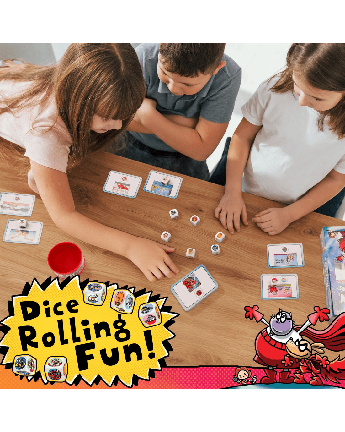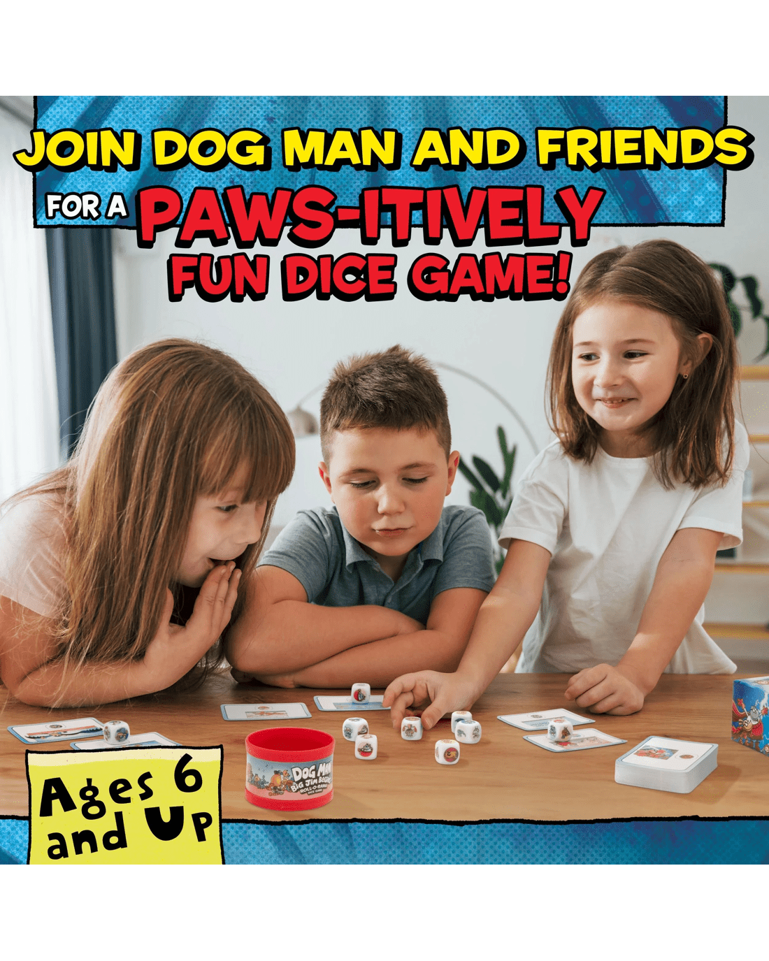 Dive into the world of Dog Man and Big Jim with this action-packed dice game that brings your favourite story to life. Ready for a whirlwind of excitement, you and your friends will race to match dice, complete wacky Story Cards, and leap ahead to victory. The Dog Man Police Badge adds a thrilling twist, giving you a wildcard boost just when you need it most. With every roll, laughter fills the room as everyone competes to be the first to gather 10 matches. Perfect for kids aged 6 and up, this game keeps everyone on their toes with its easy-to-learn rules and joyful gameplay. All you need is a sense of fun and a bit of luck, so gather around and start your adventure now. Don’t wait—bring the fun home and let your family game nights shine.Features
