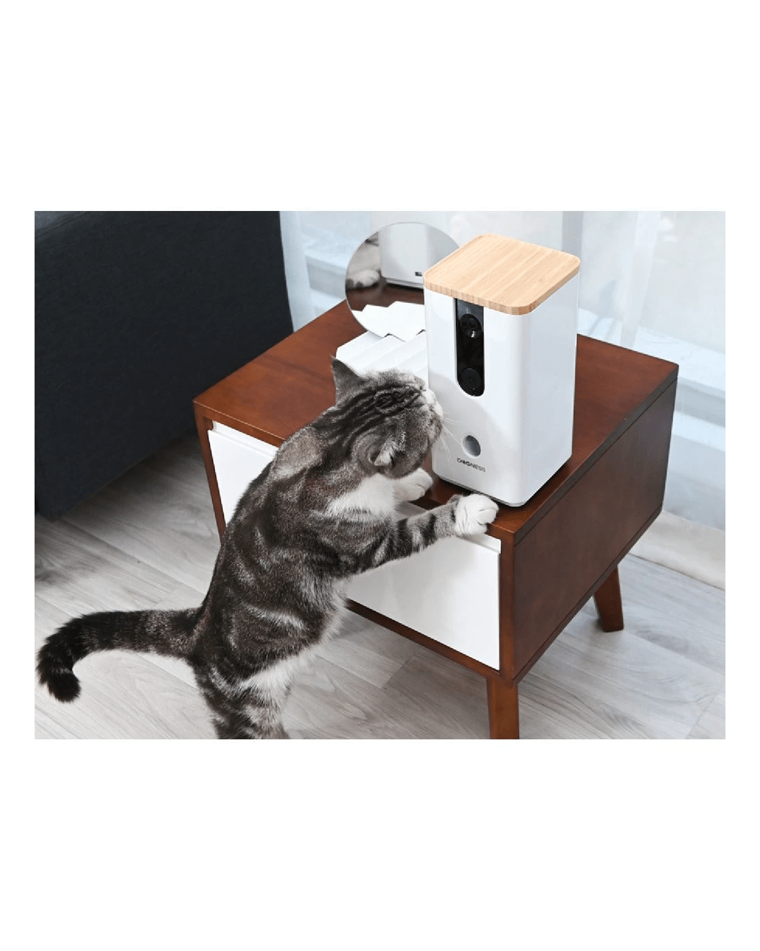 - The Smart Cam and Treat Dispenser makes keeping an eye and an ear on your pet easy, allowing you to interact with them from anywhere.