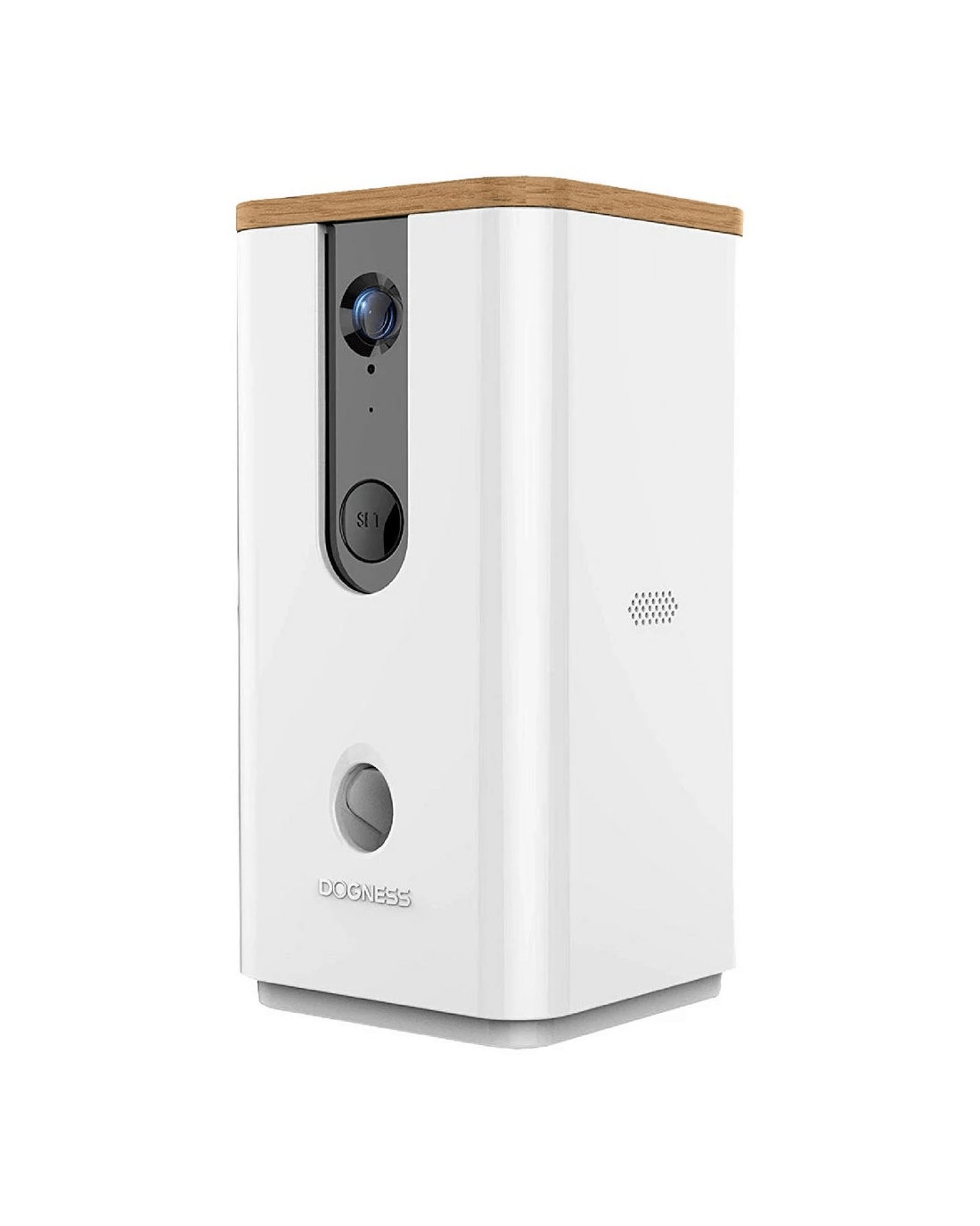 The Dogness Smart Pet Cam with Treat Dispenser lets you be with your beloved pet even when you're not physically with them. Connecting via your home's 2.4 GHz WiFi network, this Smart Cam and Treat Dispenser lets you have a 2-way chat with your pet via a built-in HD camera that features a wide-angle 165-degree night vision lens. A natural bamboo lid hides up to 6.4-ounces of treats, and suction cups at the base keep the device from tipping over.
