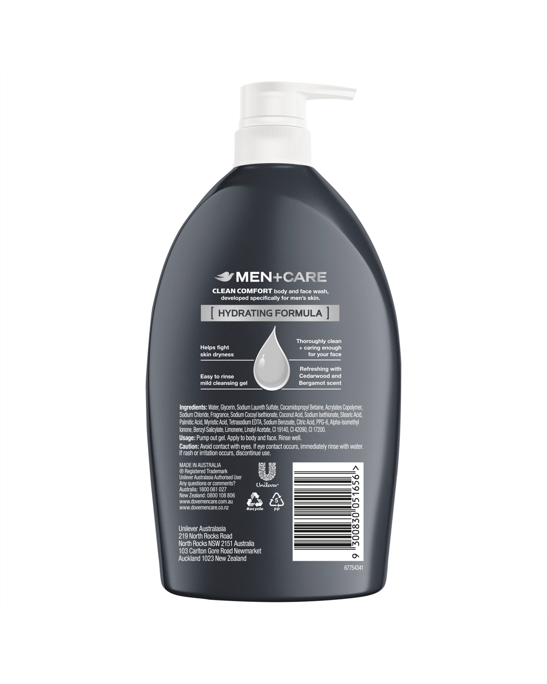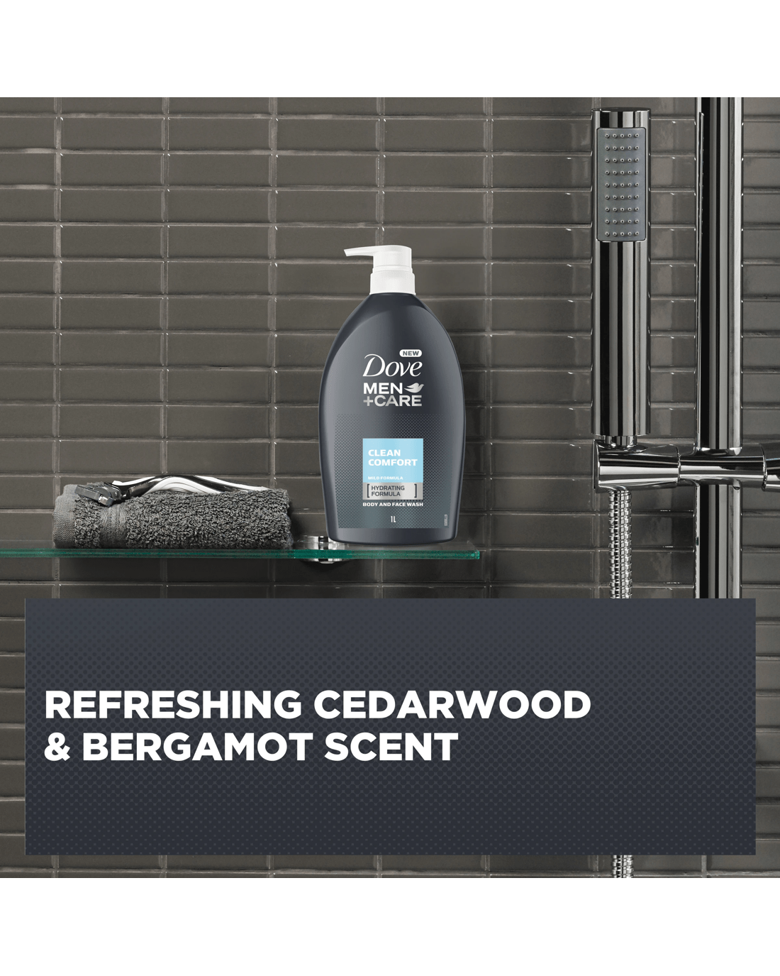 Dove Men+Care Clean Comfort Body and Face Wash 1L - Cedarwood and Bergamot Scented