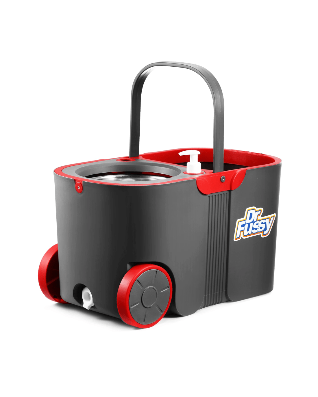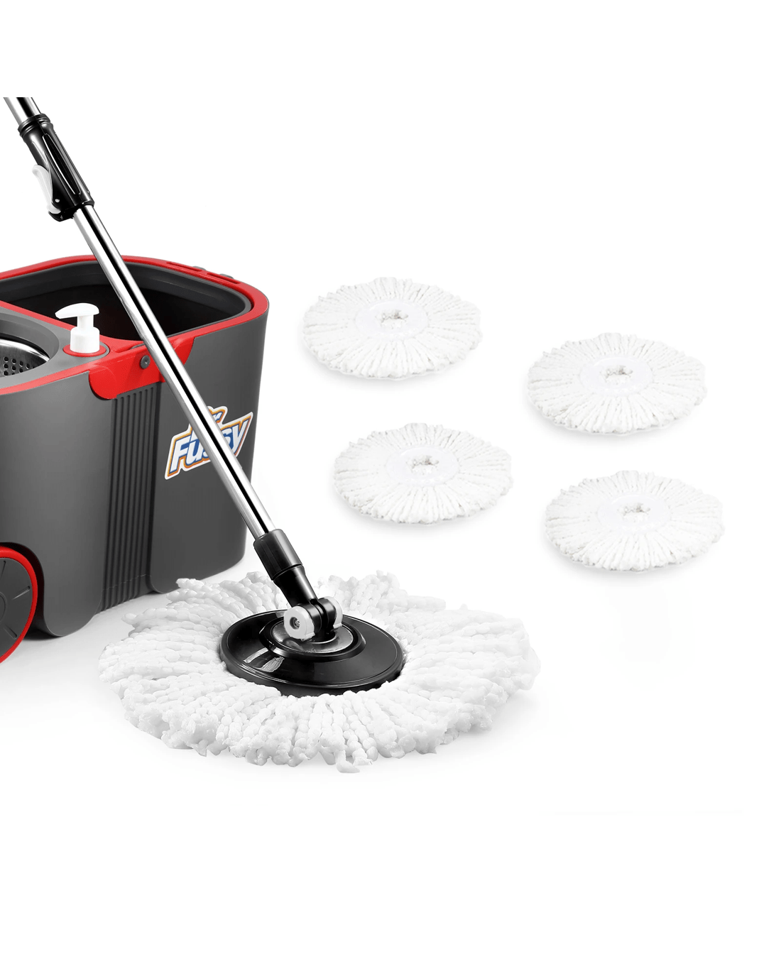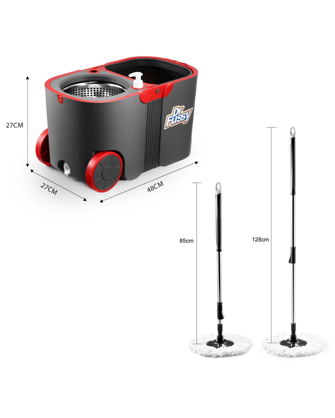 Dr FUSSY Spin Mop and Bucket Set Tile Wood Floor Cleaner 4 Microfiber Mop Heads Easy Cleaning System 360 Degree Rotating