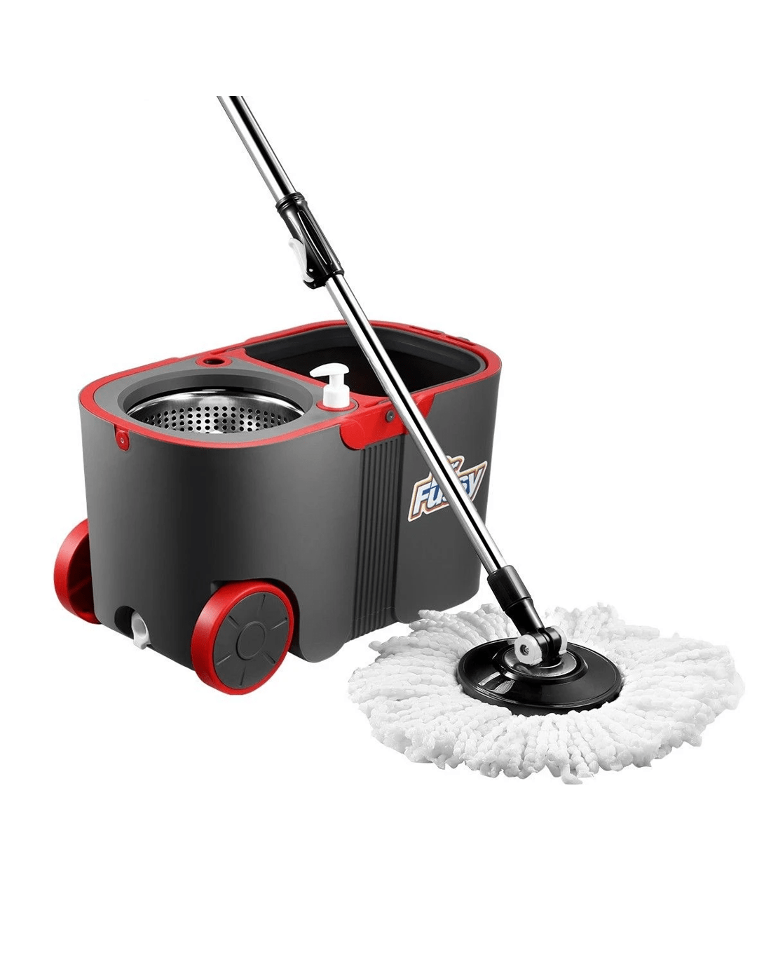 Cleaning the house floor will be much easier with this spin mop and bucket set from Dr Fussy. It features a well-designed bucket with wheels, allowing you to move around with ease. The upgraded swivel mop head can get under your couches, beds and other furniture effortlessly. The length of the handle can be adjusted to meet your needs. Included are four electrostatic microfibre mop heads which can attract dust, grime and residues and pick up surface dirt and hair in a breeze. Better still, the dirty water can be drained away directly from the hole in the bottom of the bucket and the mop head is machine-washable.