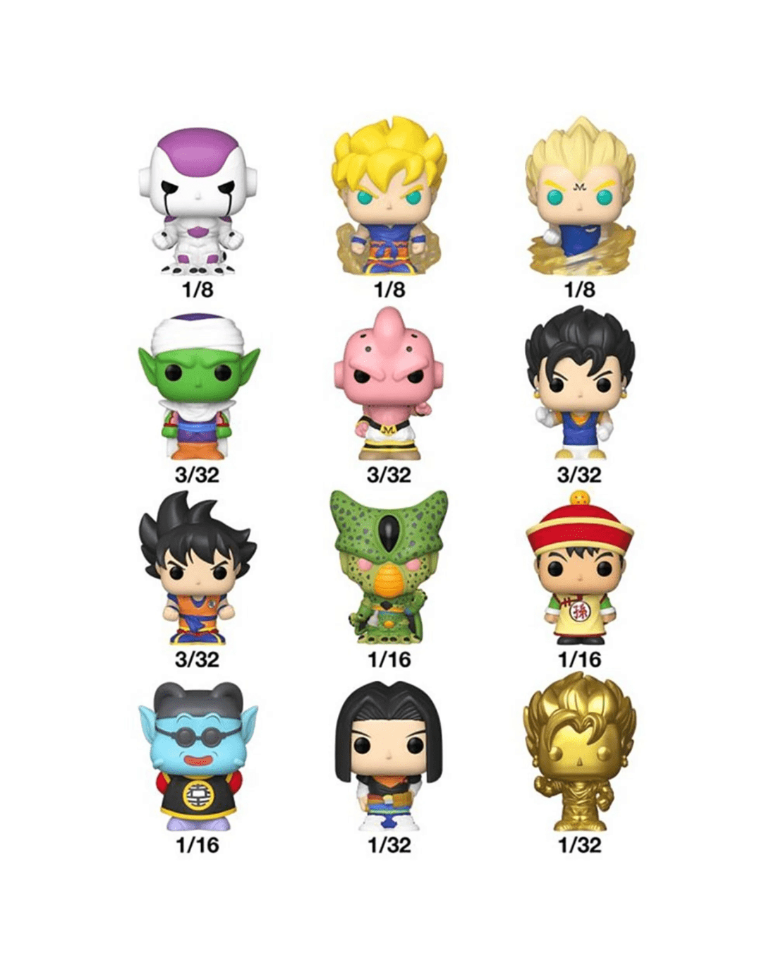 These Dragon Ball Bitty Pop! blind bags feature your favourite characters from the world of Dragon Ball! There are 12 figures to collect.