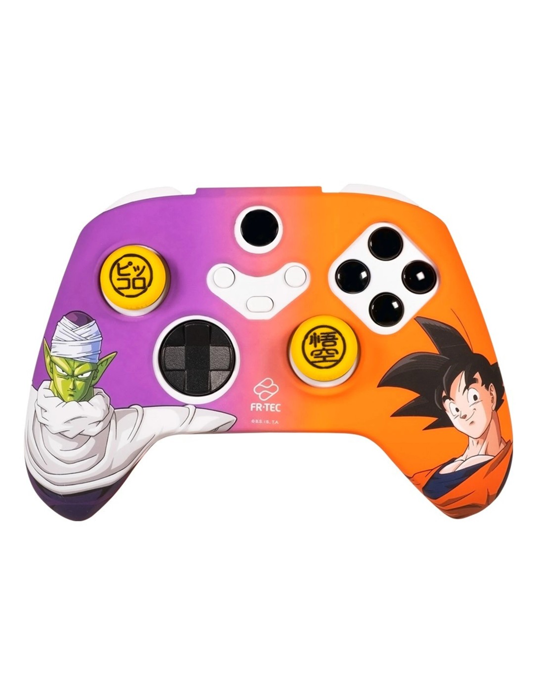 The Dragon Ball ZTM Namek Combo Pack for XboxTM Series features the design of the namekian Piccolo and Son Goku, with the colours that identify them on each horn of the XboxTM Series controller, with the names of both characters represented in kanji on the grips!