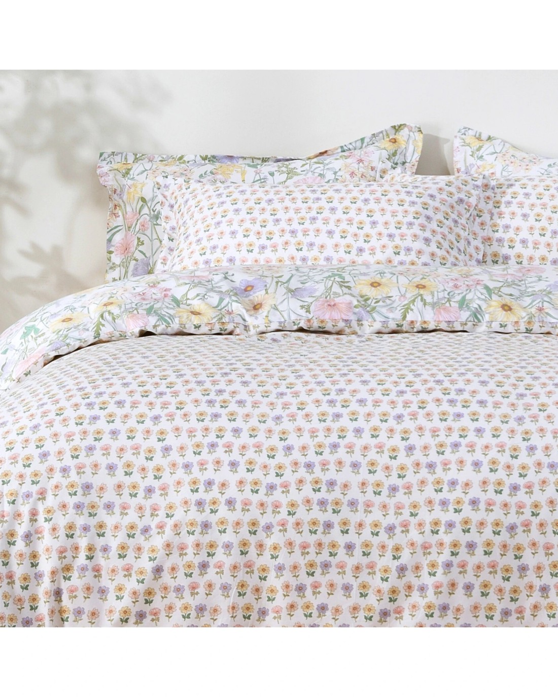 Enjoy the playful style of our Amara reversible cotton quilt cover set - featuring an English garden inspired floral on one side and a soft ditsy floral print on the reverse. Made of breathable, 100% cotton, Dreamaker's reversible printed quilt cover sets have two unique prints on both sides of the quilt cover and matching pillowcases, giving you two styles in one.
