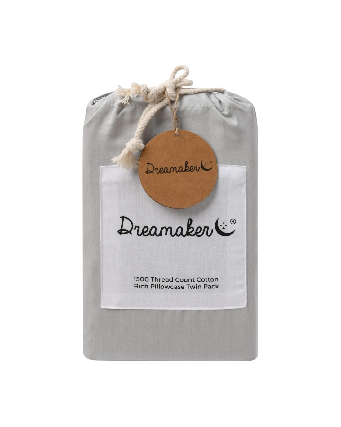 Dreamaker 1500TC Cotton Rich Standard Pillowcase Twin Pack - Dove Grey