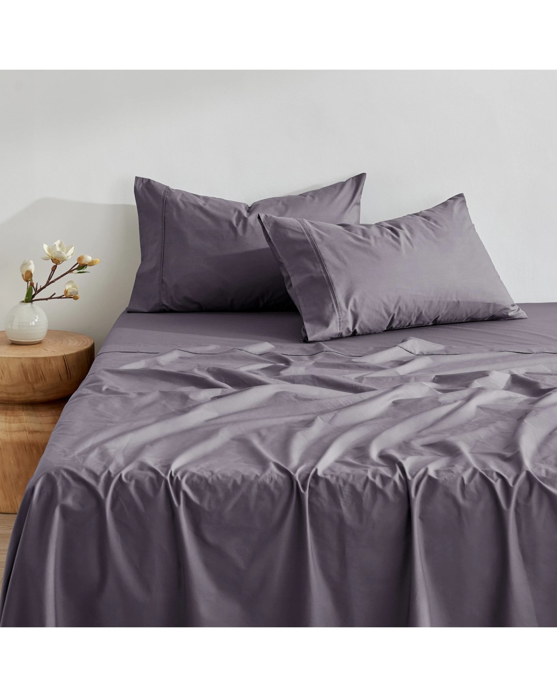 Dreamaker 300TC Cotton Percale Sheet Set - Single Bed - Charcoal