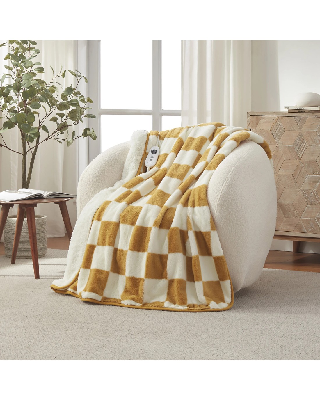 Dreamaker Axia Checkered Plush Heated Throw 130x160cm - Chai and Cream