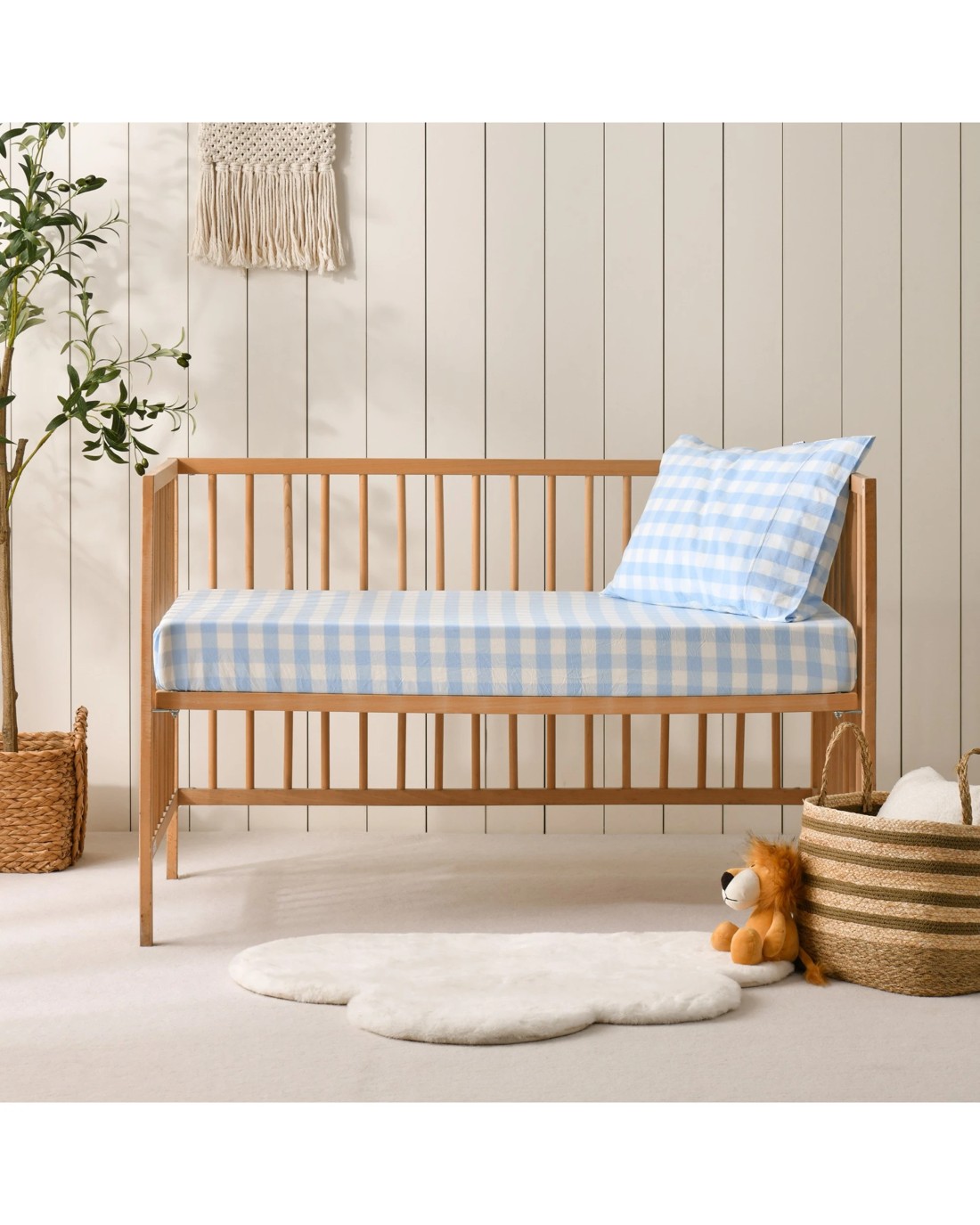 Dreamaker Baby Lola Washed Cotton Yarn Dyed Gingham Combo Set - COT Size - Sky