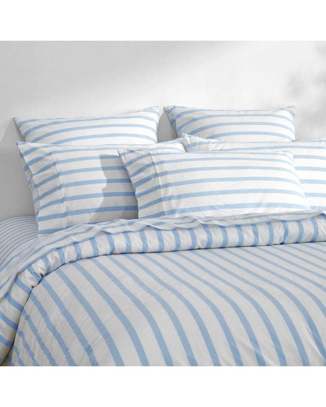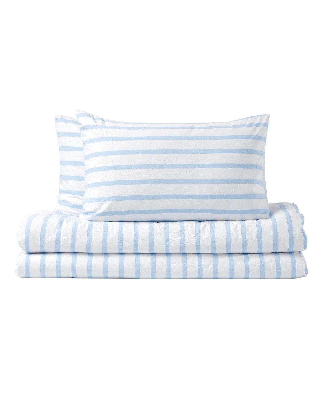 Dreamaker Bask Yarn Dyed Washed Cotton Striped Quilt Cover Set - King Bed - Sky