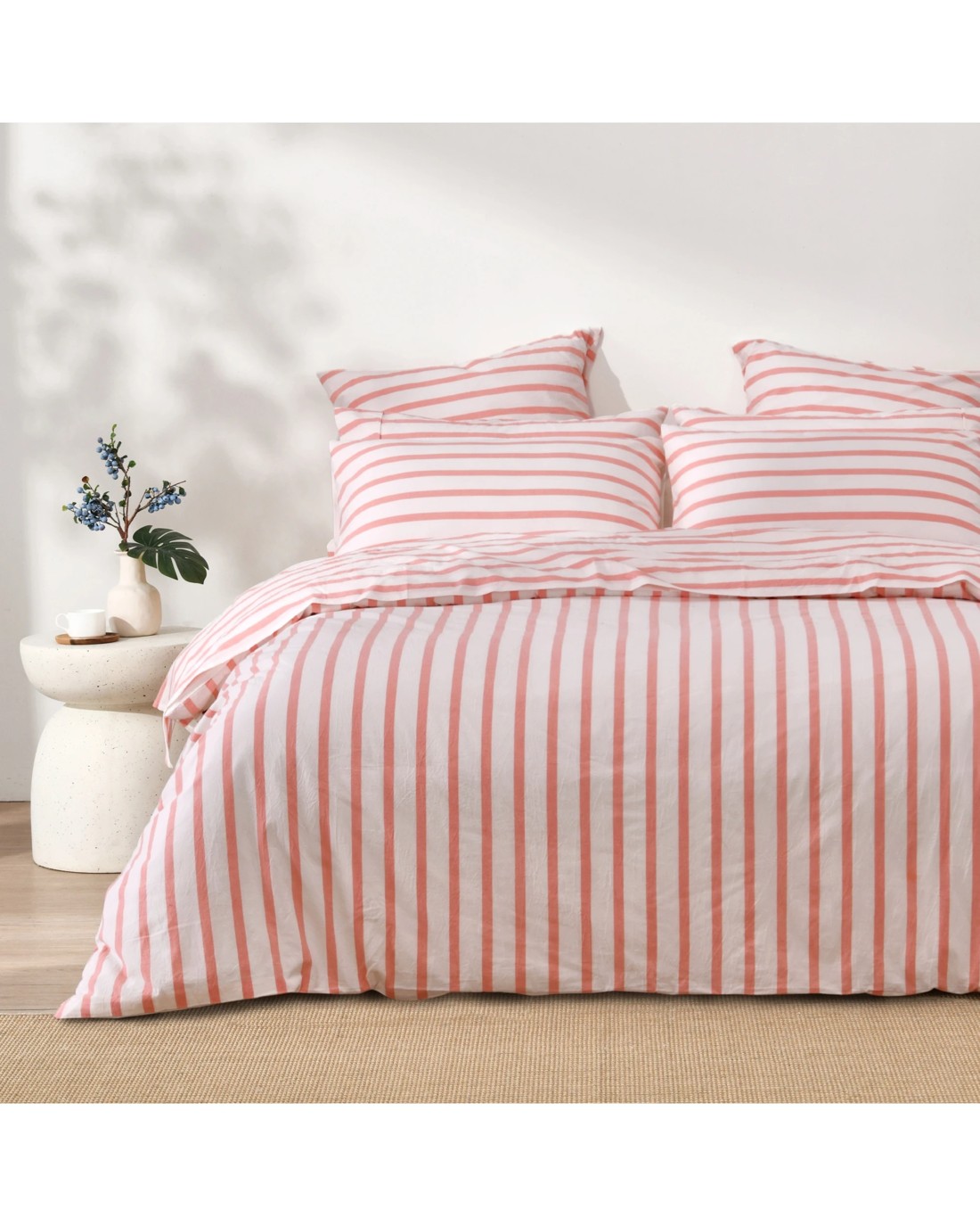 Dreamaker Bask Yarn Dyed Washed Cotton Striped Quilt Cover Set - Single Bed - Coral