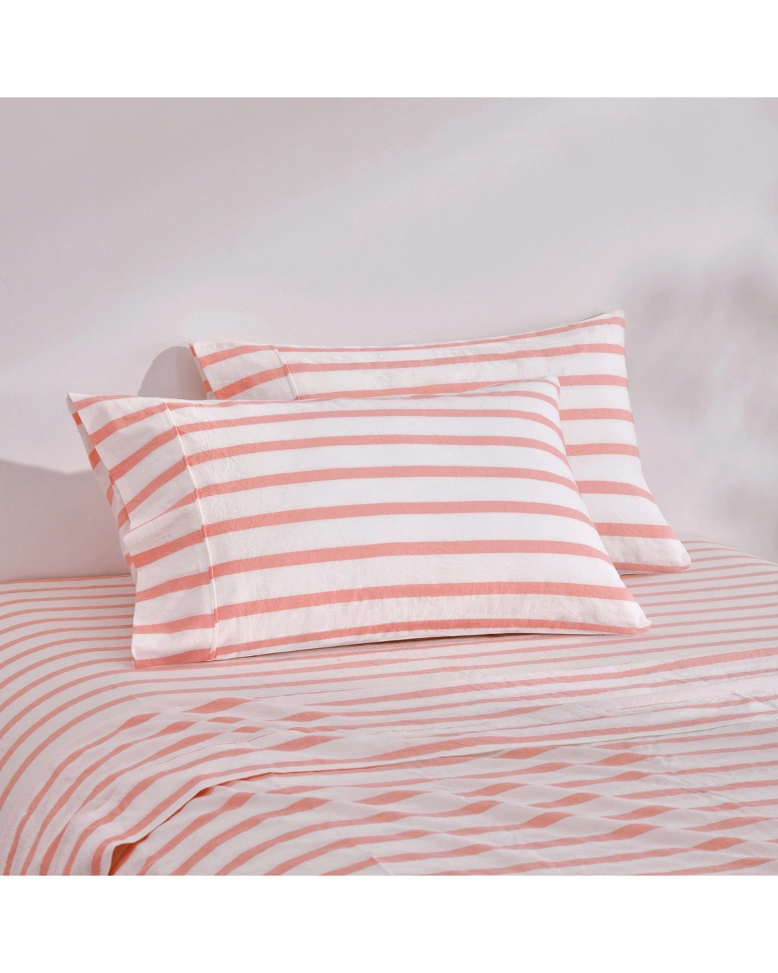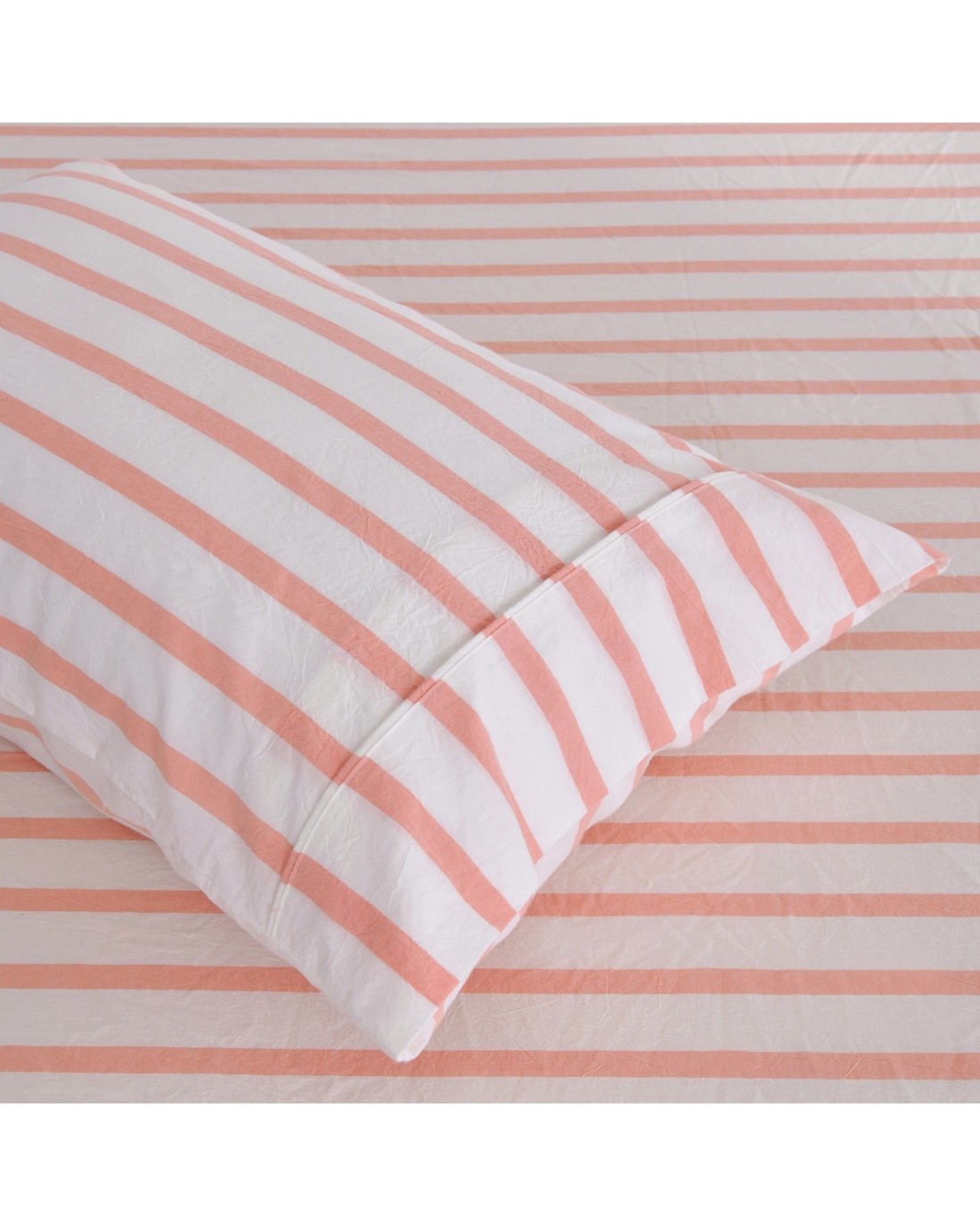 Sold by DI HomeDreamaker Bask Yarn Dyed Washed Cotton Striped Sheet Set - Double Bed - Coral