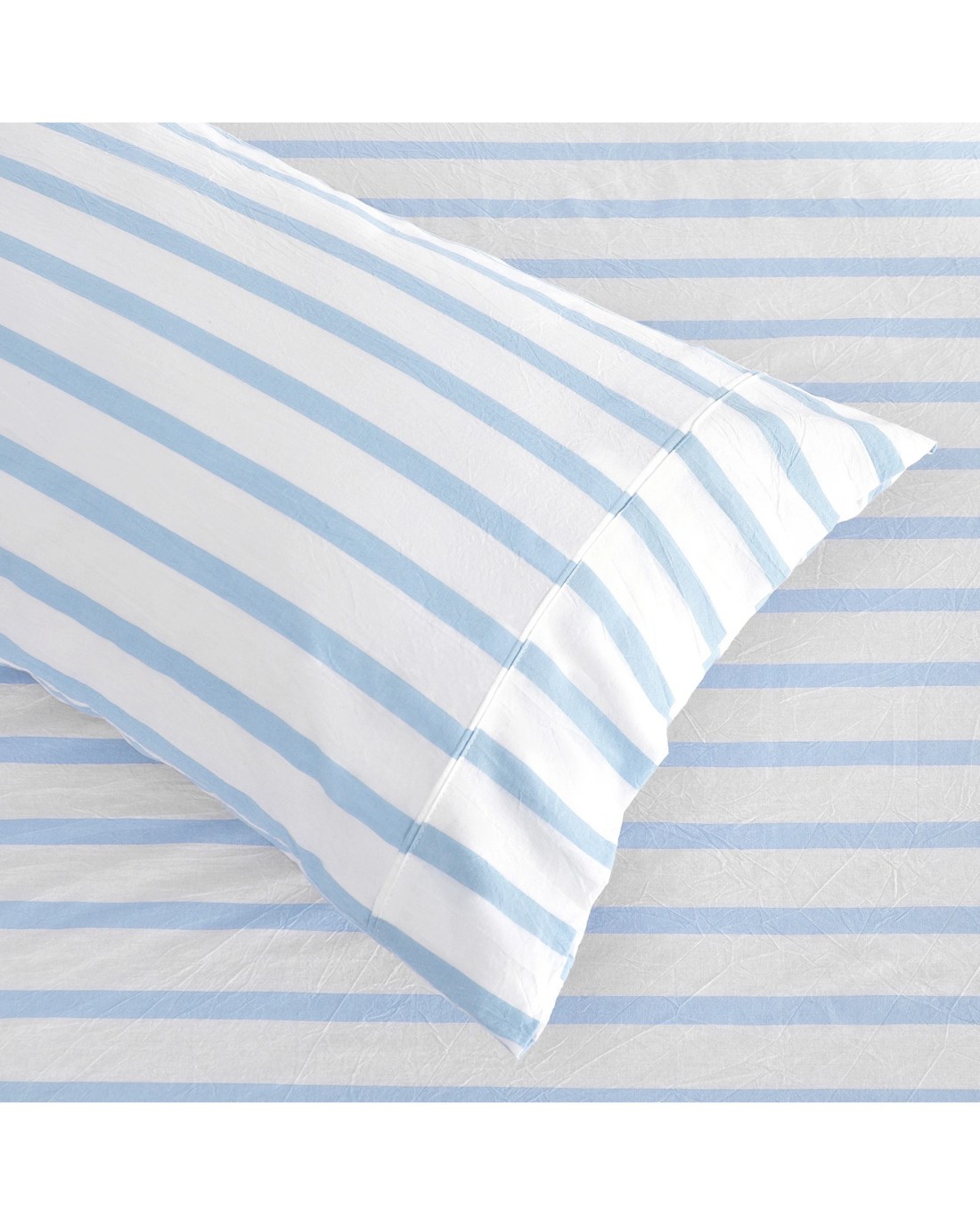 Dreamaker Bask Yarn Dyed Washed Cotton Striped Sheet Set - King Bed - Sky