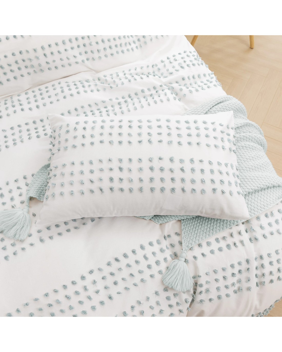 Dreamaker Clovelly Tufted Stripe Quilt Cover Set - King Bed - White