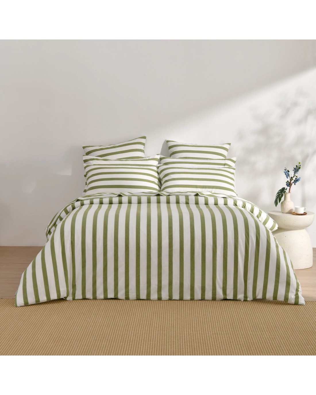 Dreamaker Cove Yarn Dyed Washed Cotton Striped Quilt Cover Set - Single Bed - Olive