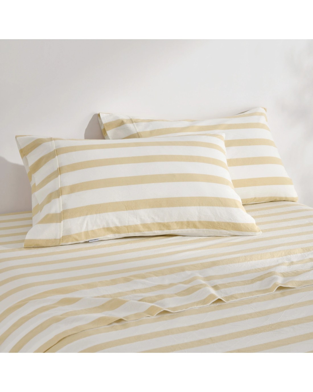 Dreamaker Cove Yarn Dyed Washed Cotton Striped Sheet Set - Queen Bed - Sand