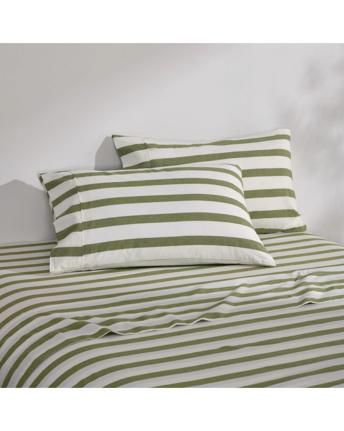 Dreamaker Cove Yarn Dyed Washed Cotton Striped Sheet Set - Single Bed - Olive