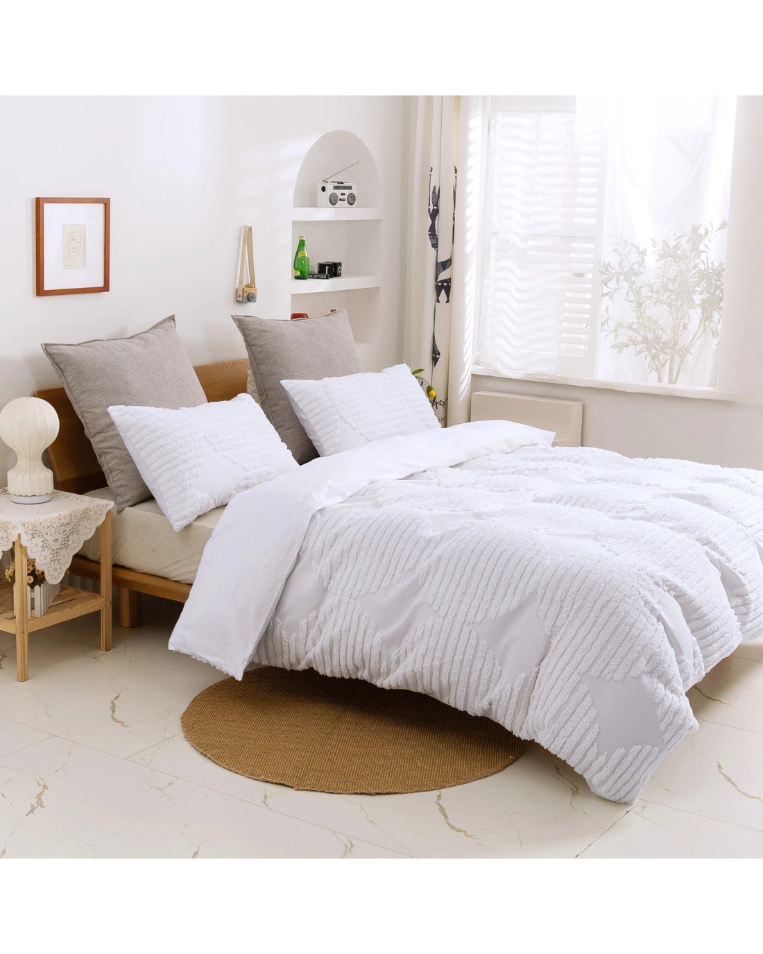 Sold by DI HomeDreamaker Darvo Tufted Washed Vintage Cotton Quilt Cover Set - King Bed - White