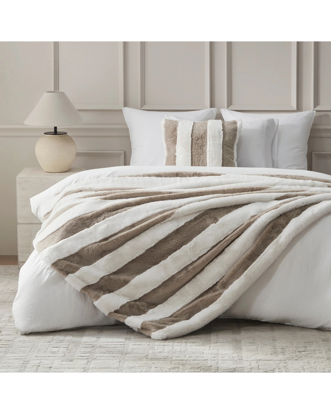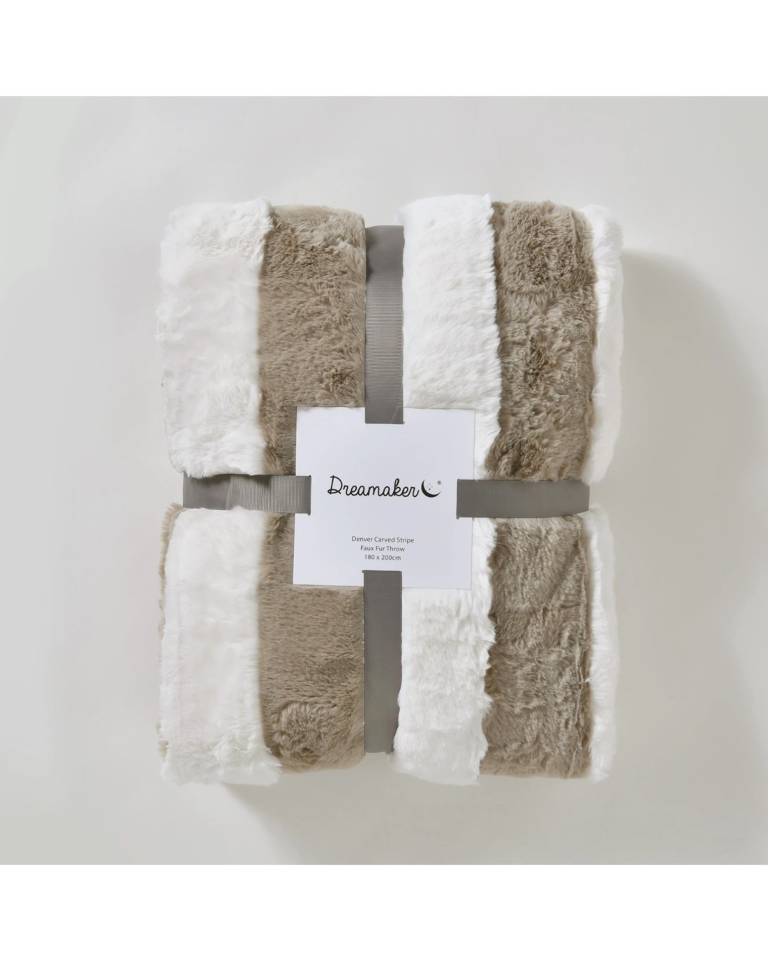 Dreamaker Denver Carved Stripe Faux Fur Throw 180x200cm - Natural