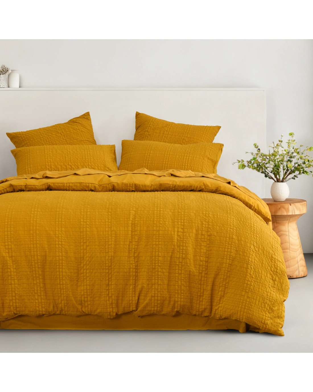 Sold by DI HomeDreamaker Ellis Seersucker Quilt Cover Set - Double Bed - Mustard