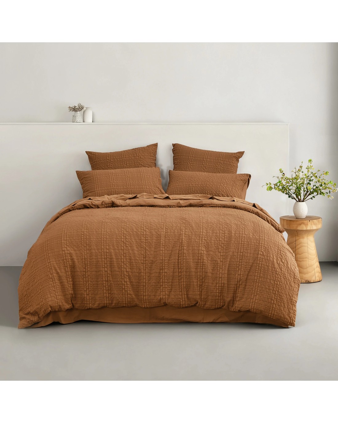 Sold by DI HomeDreamaker Ellis Seersucker Quilt Cover Set - Queen Bed - Rust