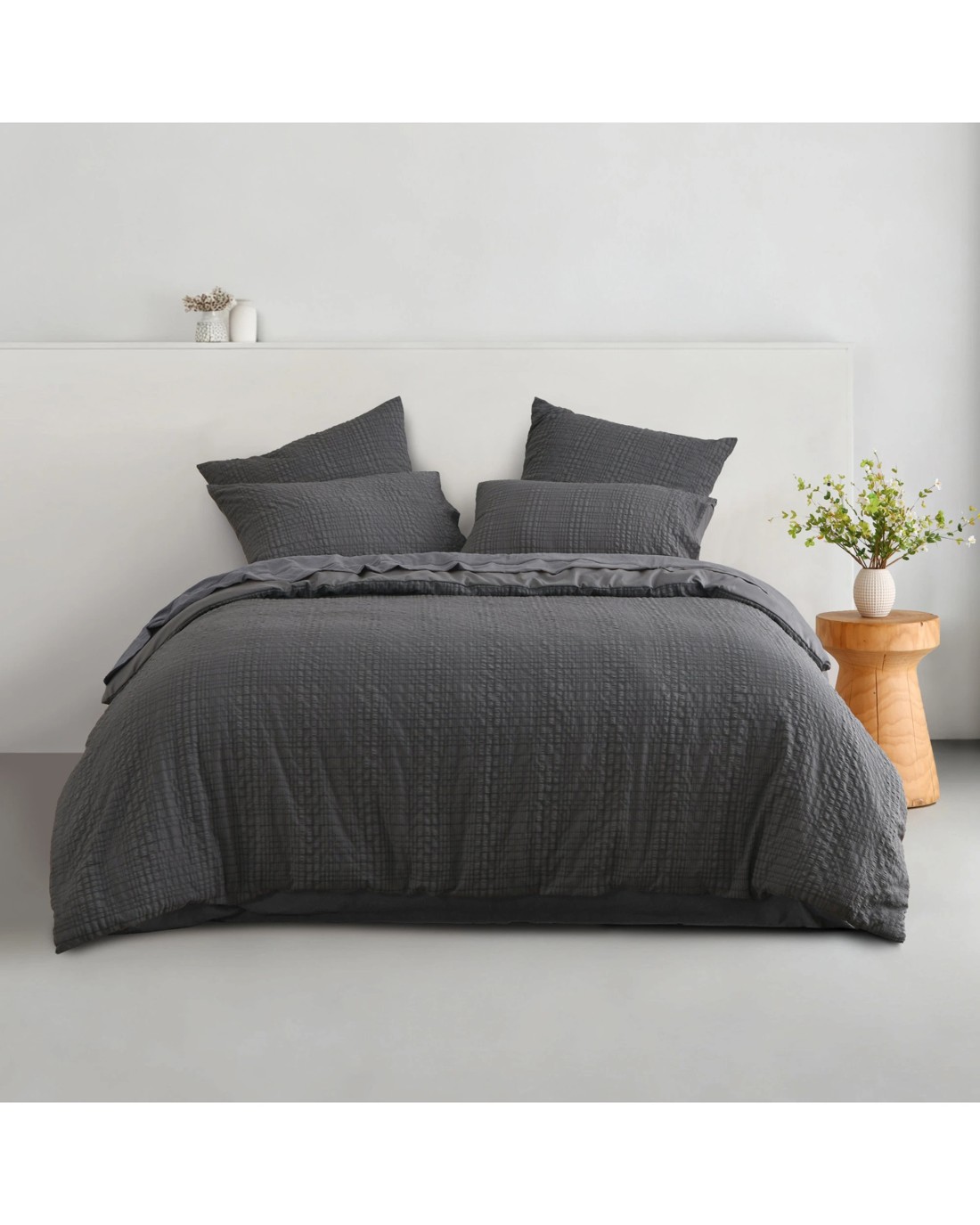Sold by DI HomeDreamaker Ellis Seersucker Quilt Cover Set - Super King Bed - Charcoal